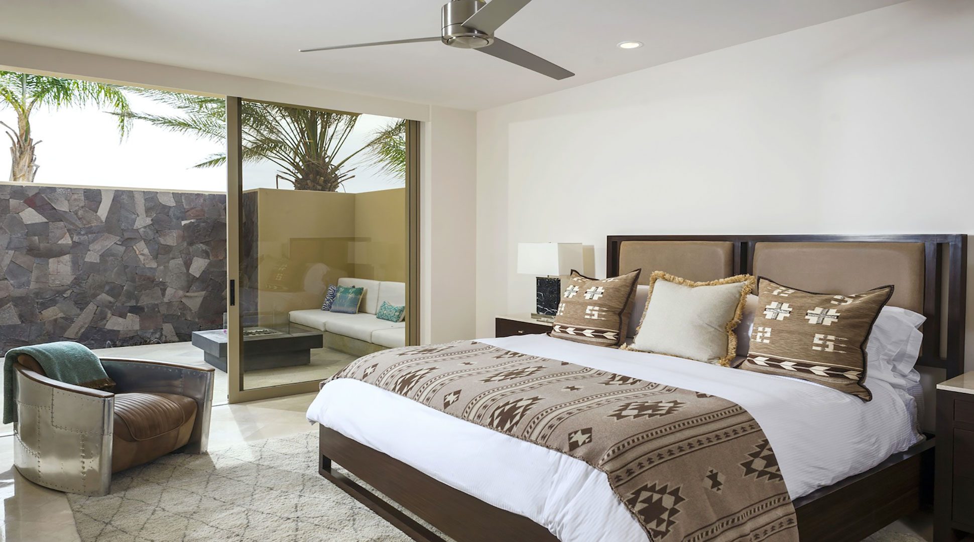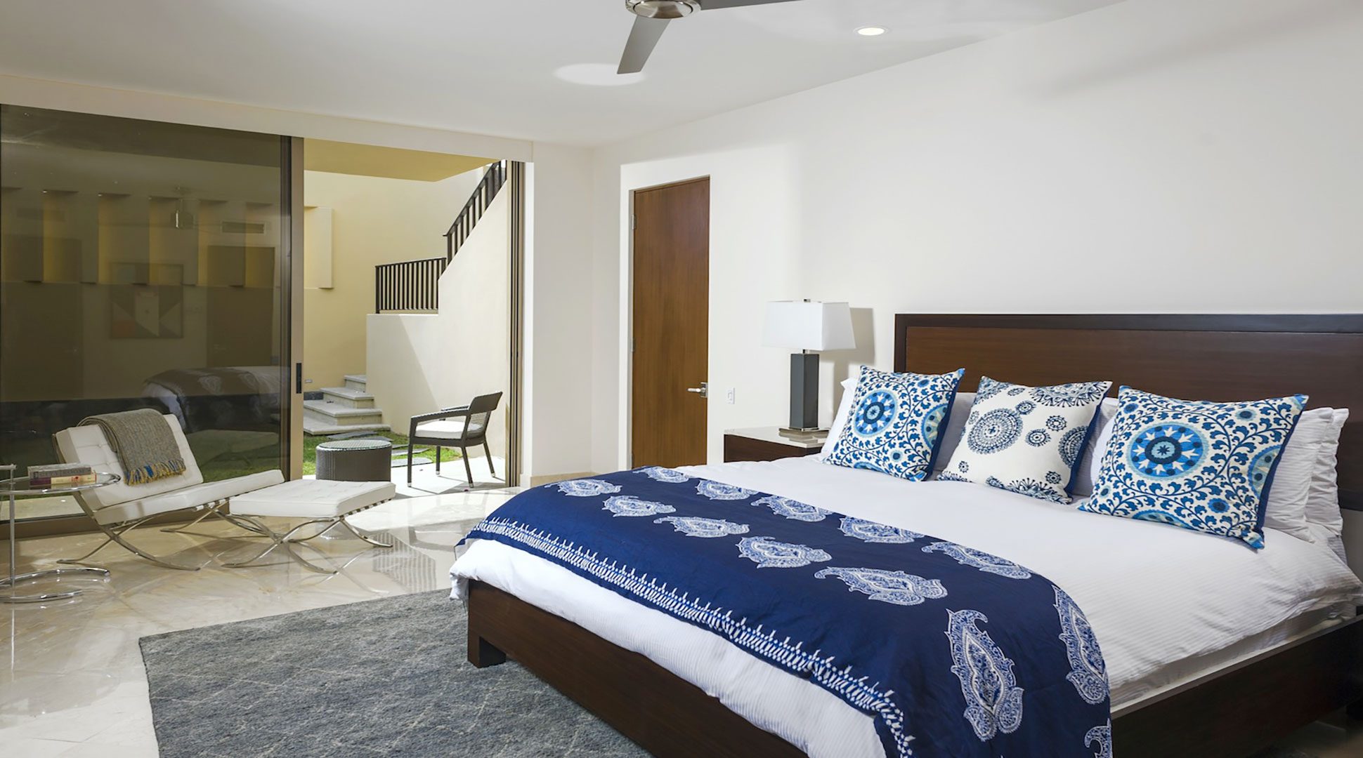Interiors in calming neutral tones with vibrant accents