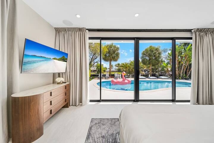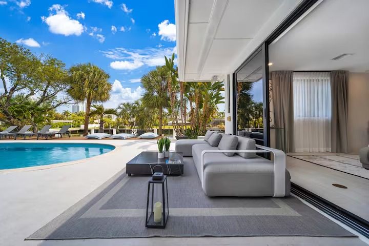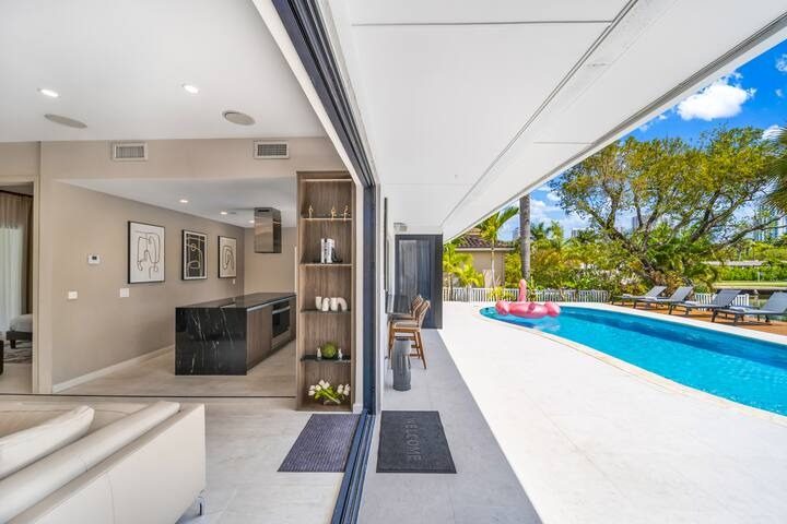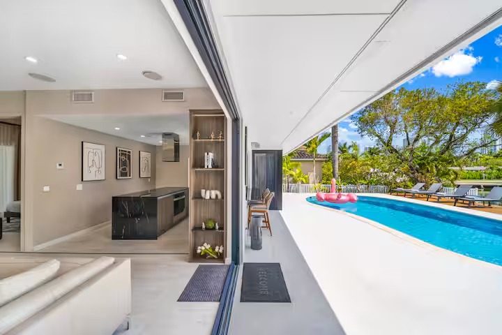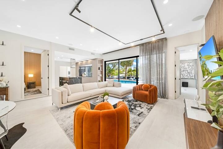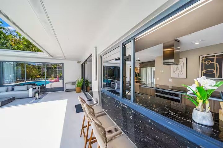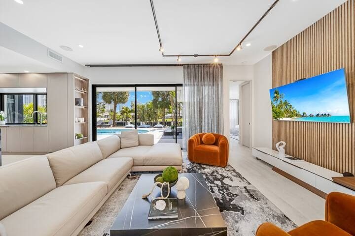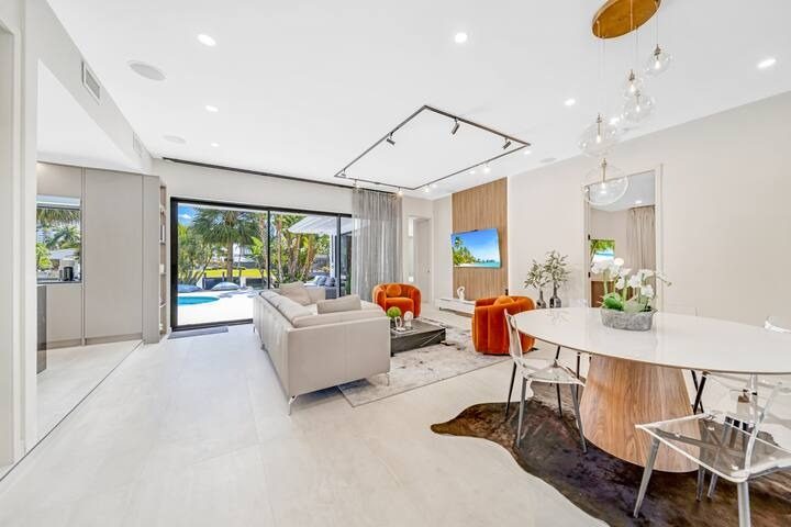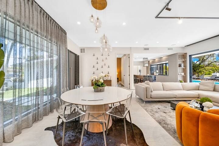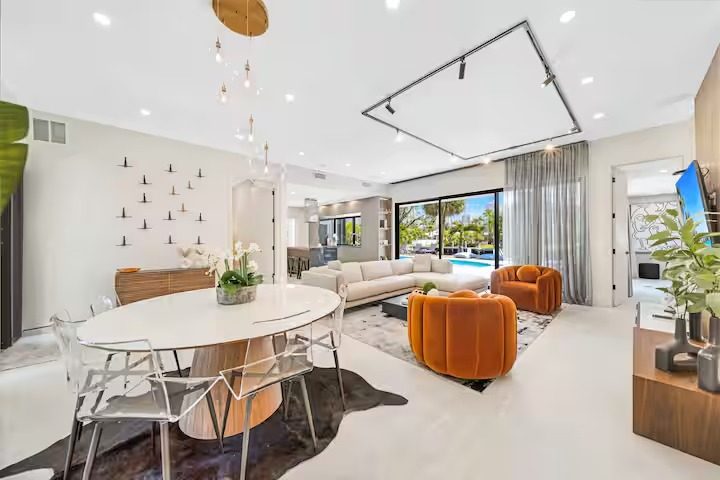 The villa features expansive open-concept living and dining areas, enhanced by abundant natural light, clean architectural lines, and tasteful modern furnishings that create an inviting yet upscale ambiance.