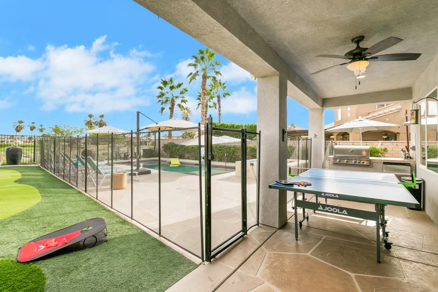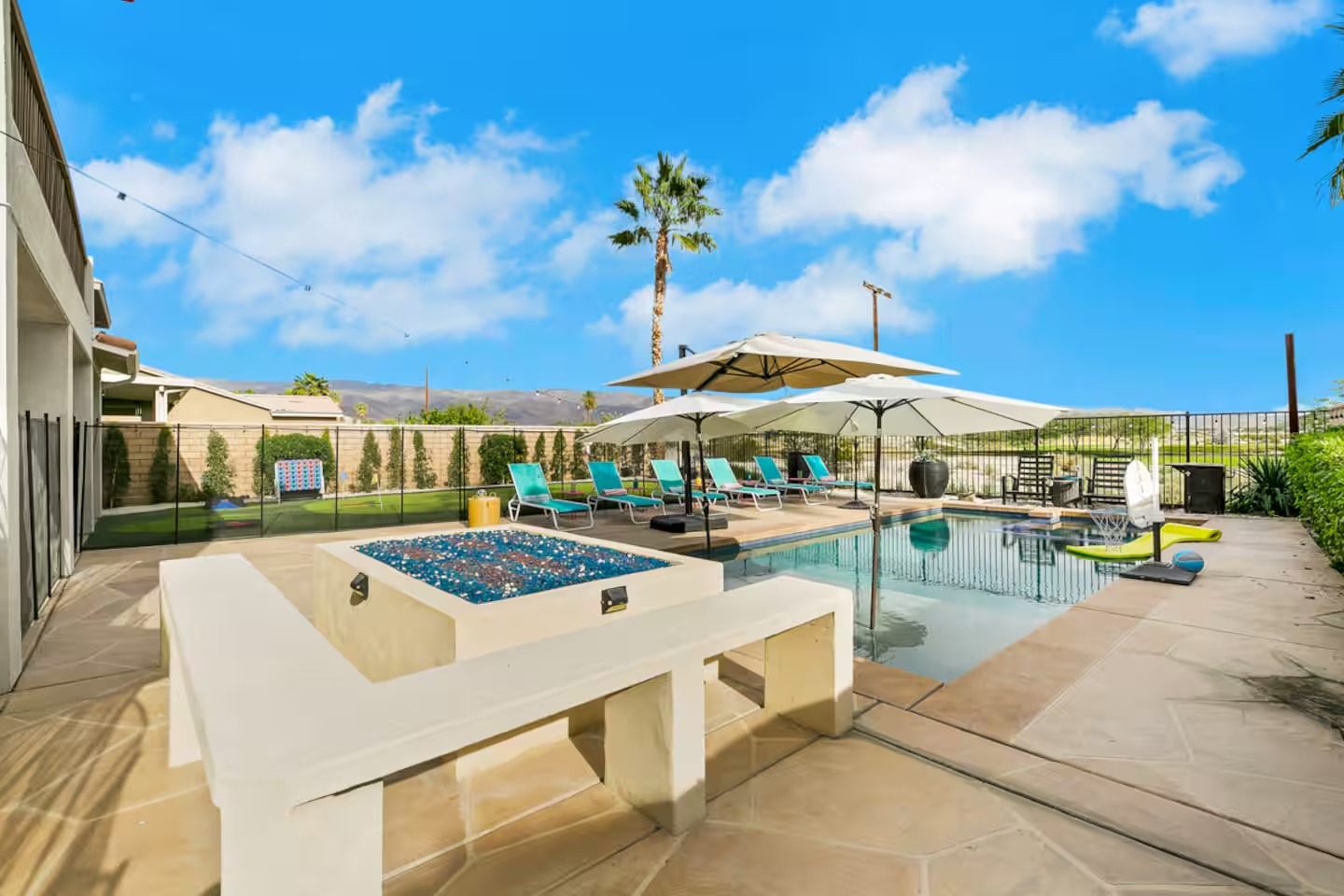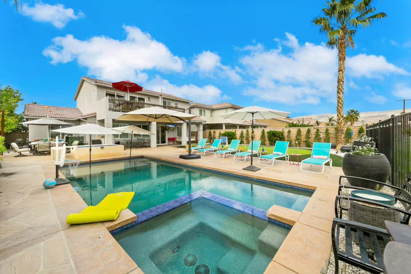 Villa Cactus Lux is a stunning desert escape that effortlessly blends modern elegance with relaxed California charm, offering a luxurious and spacious haven for families, friends, or groups traveling together. Designed with stylish finishes and thoughtful touches throughout, this villa is bright, open, and inviting — welcoming you with beautifully appointed living spaces that flow seamlessly into each other, perfect for both entertaining and unwinding after a day in the sun. The fully equipped gourmet kitchen and generous dining areas set the stage for memorable shared meals, while the comfortable bedrooms provide peaceful retreats with plenty of space for rest. Outside, a private desert oasis awaits, featuring a sparkling pool, lounging areas, and sun-soaked patios that capture the region’s signature warm, radiant light. Whether you’re sipping your morning coffee among the palm trees, hosting an alfresco barbecue as the sun sets, or simply relaxing poolside under the blue California skies, every moment here feels like a serene getaway. With easy access to world-class golf courses, upscale shopping on El Paseo, scenic desert trails, and the vibrant cultural attractions of nearby Palm Springs, Villa Cactus Lux offers the perfect balance of sophistication, comfort, and desert lifestyle. It’s an ideal base for spring retreats, festival weekends, family celebrations, or just a stylish and rejuvenating escape in the heart of the Coachella Valley.