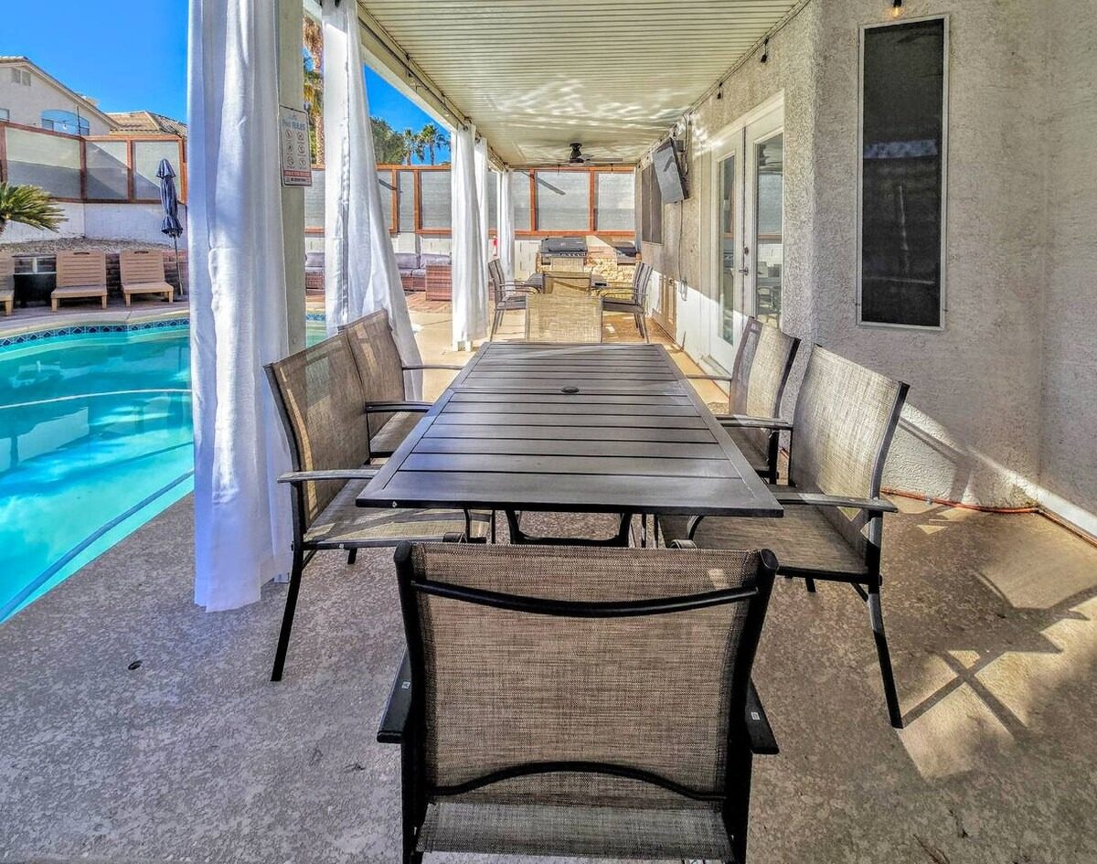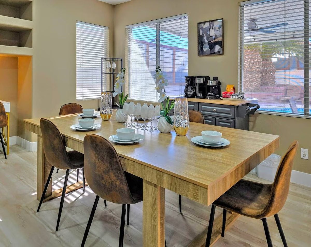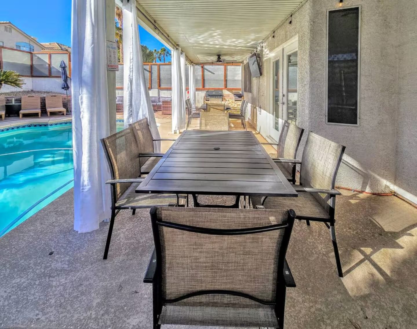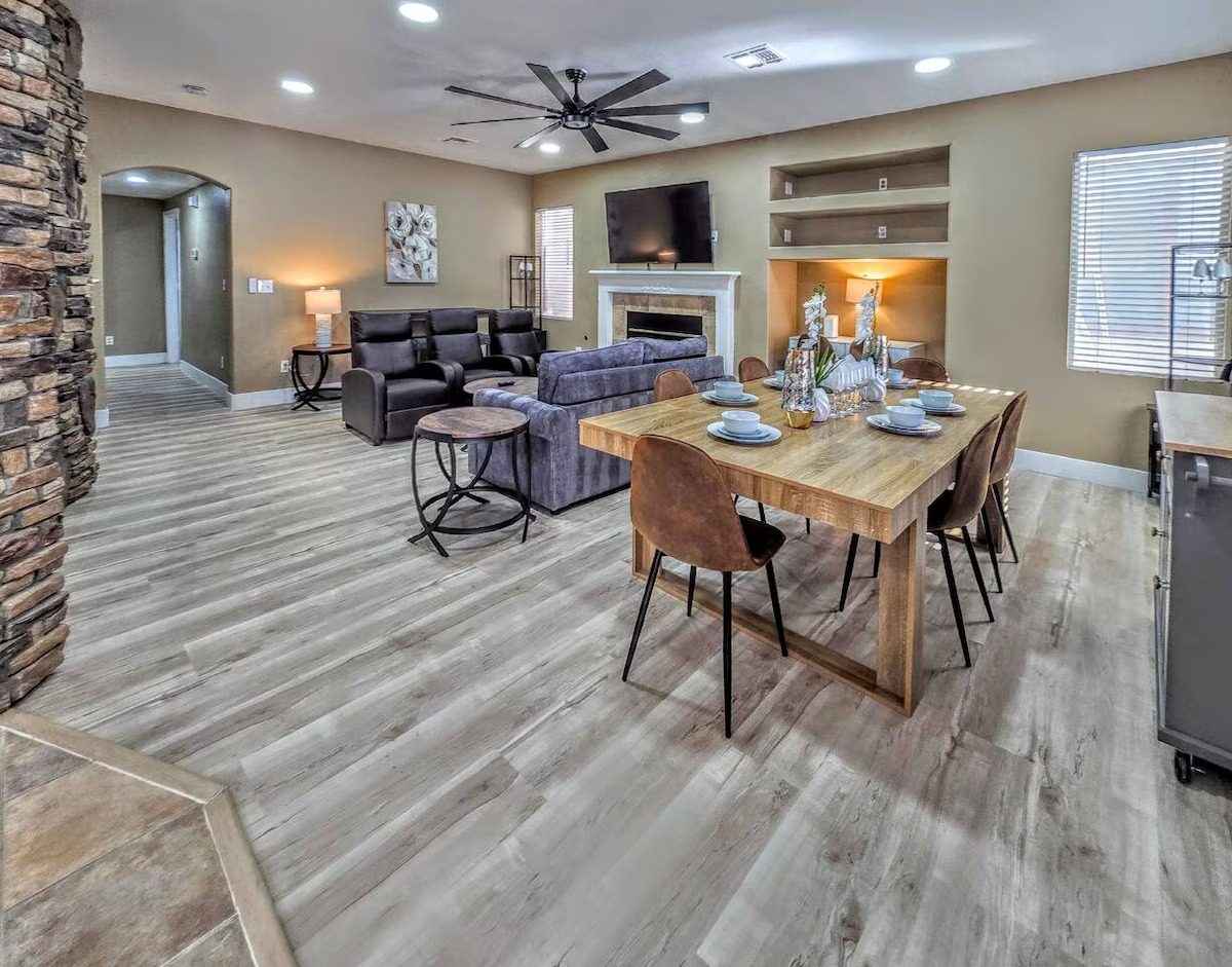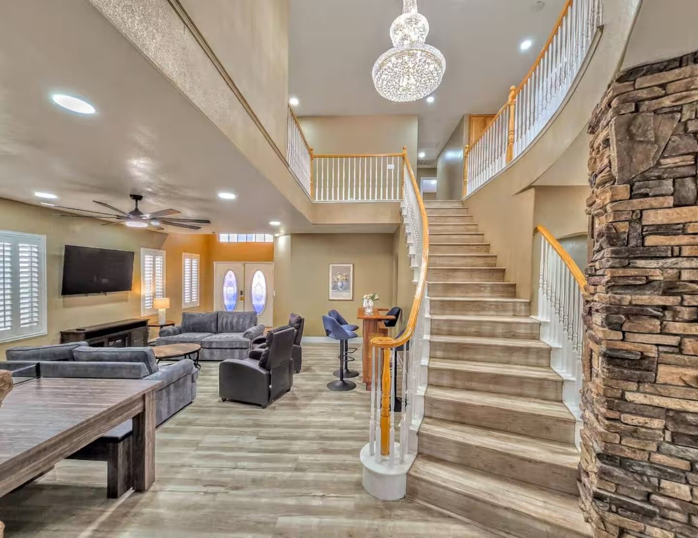 Villa Gilded Ember House is a contemporary Las Vegas retreat designed with large groups in mind. This full-home villa combines generous interior spaces, refined furnishings, and a private outdoor sanctuary to create a seamless blend of comfort, convenience, and entertainment. Whether you’re hosting a family gathering, corporate retreat, or extended vacation, the property offers the perfect balance of relaxation and accessibility to the city.