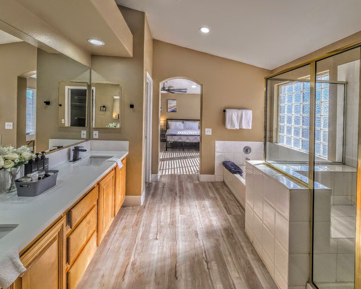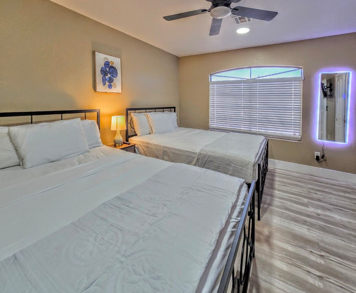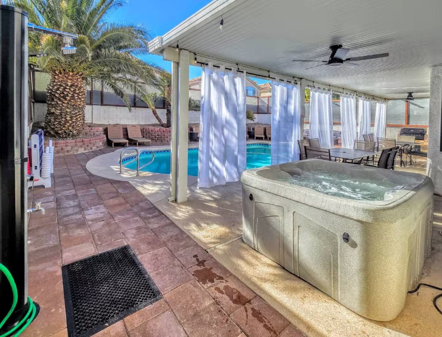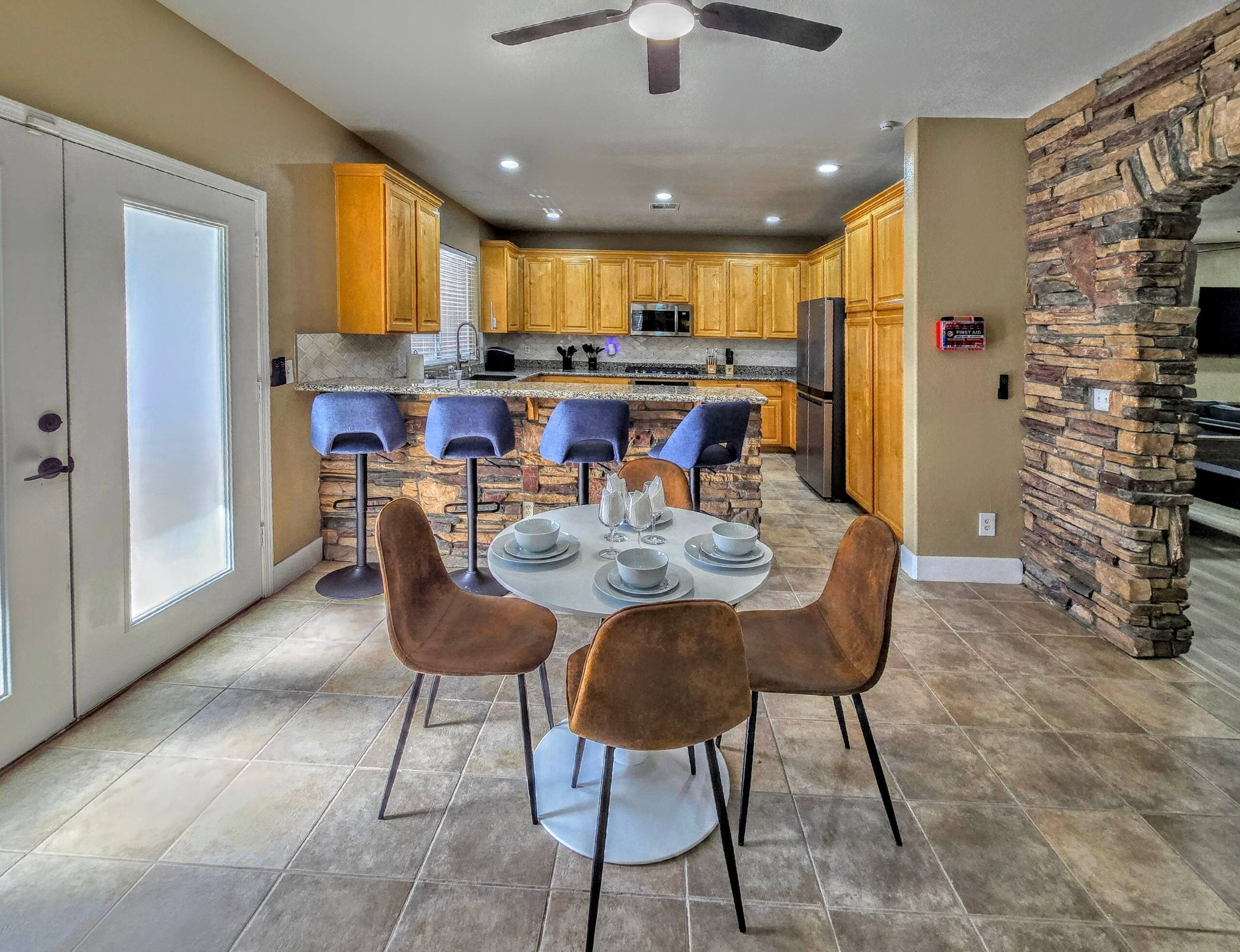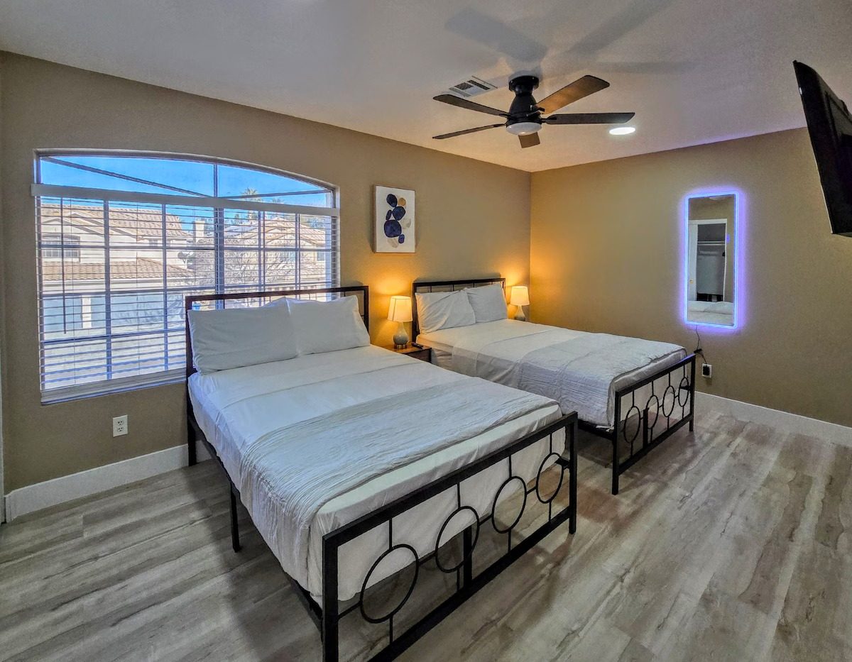 Villa Gilded Ember House is a contemporary Las Vegas retreat designed with large groups in mind. This full-home villa combines generous interior spaces, refined furnishings, and a private outdoor sanctuary to create a seamless blend of comfort, convenience, and entertainment. Whether you’re hosting a family gathering, corporate retreat, or extended vacation, the property offers the perfect balance of relaxation and accessibility to the city.