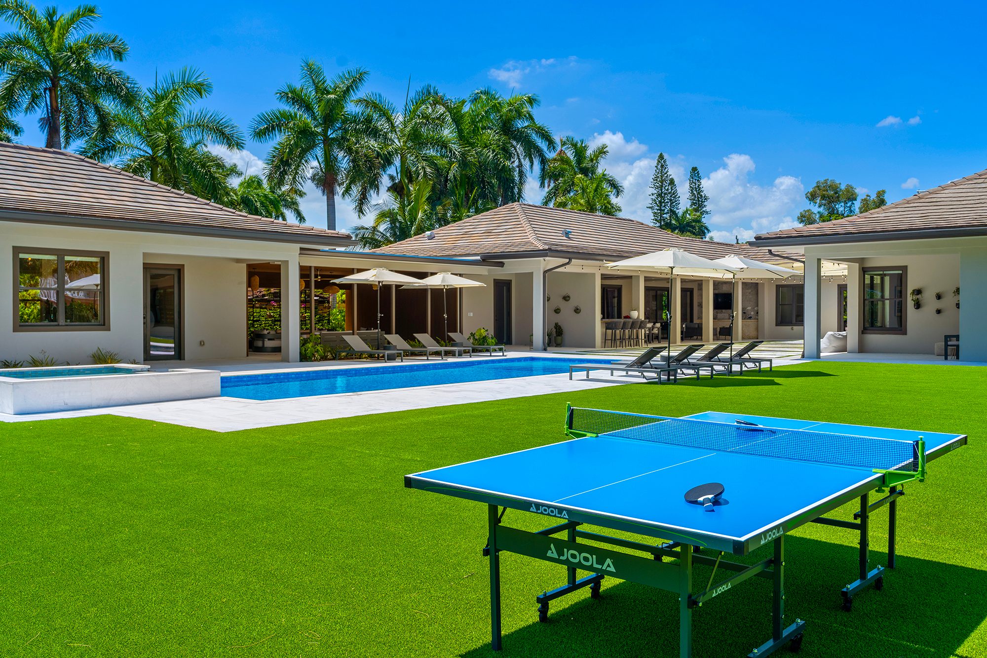 The estate’s centerpiece is the expansive resort-style pool with integrated jacuzzi, surrounded by sun loungers and shaded cabanas. Evenings are perfect for alfresco dining at the outdoor kitchen and bar, complete with a BBQ grill and seating area. For added fun, the grounds feature a private basketball court, LED-lit mini golf green that glows after dark, ping-pong table, and pool table — making Villa Banyan the ultimate playground for all ages.