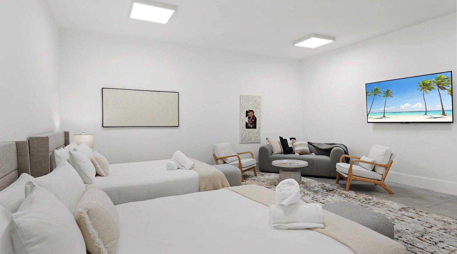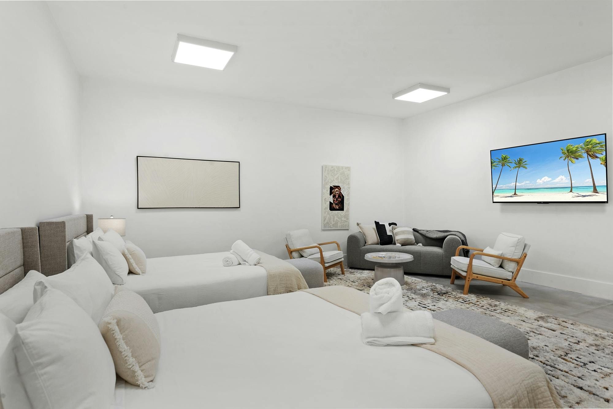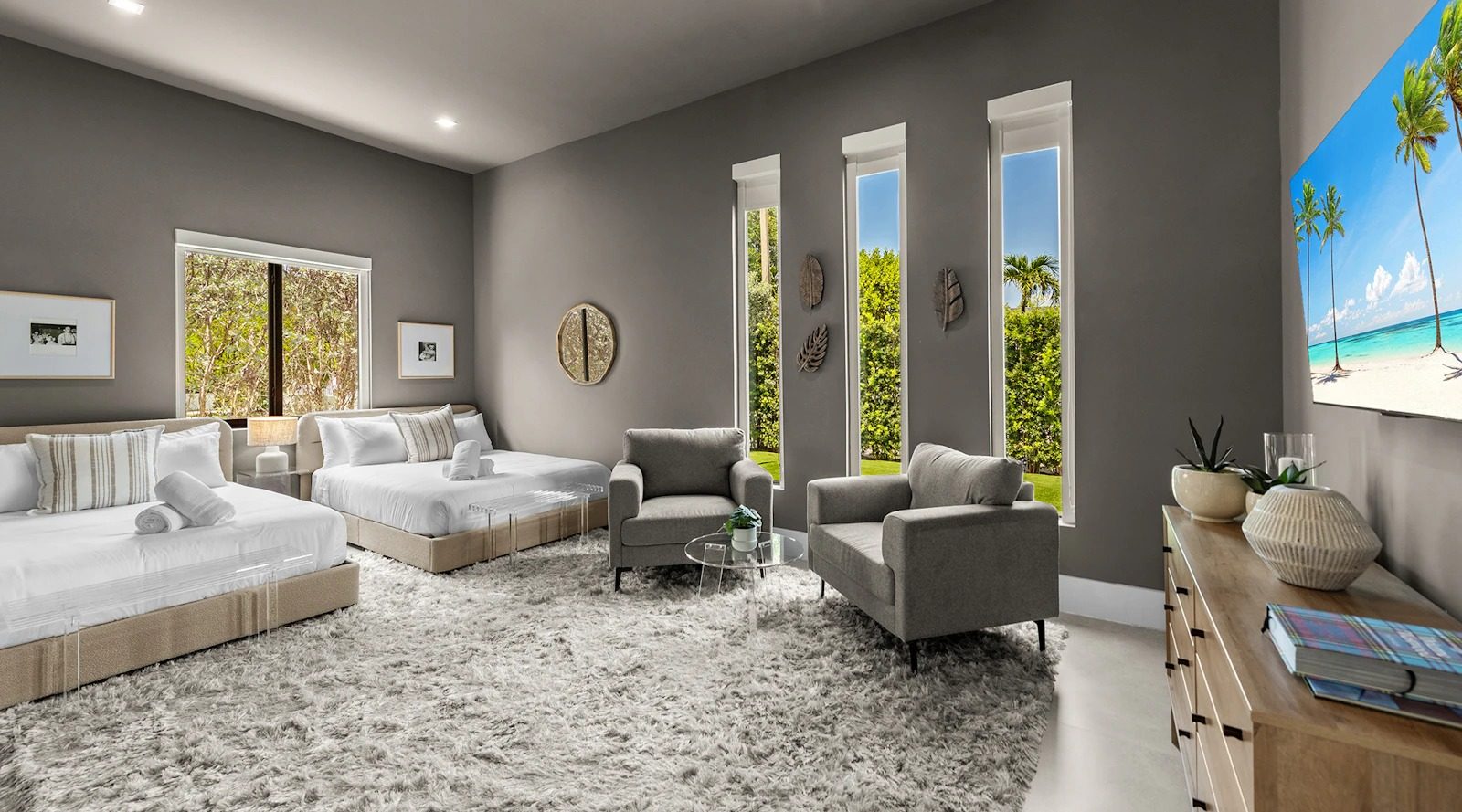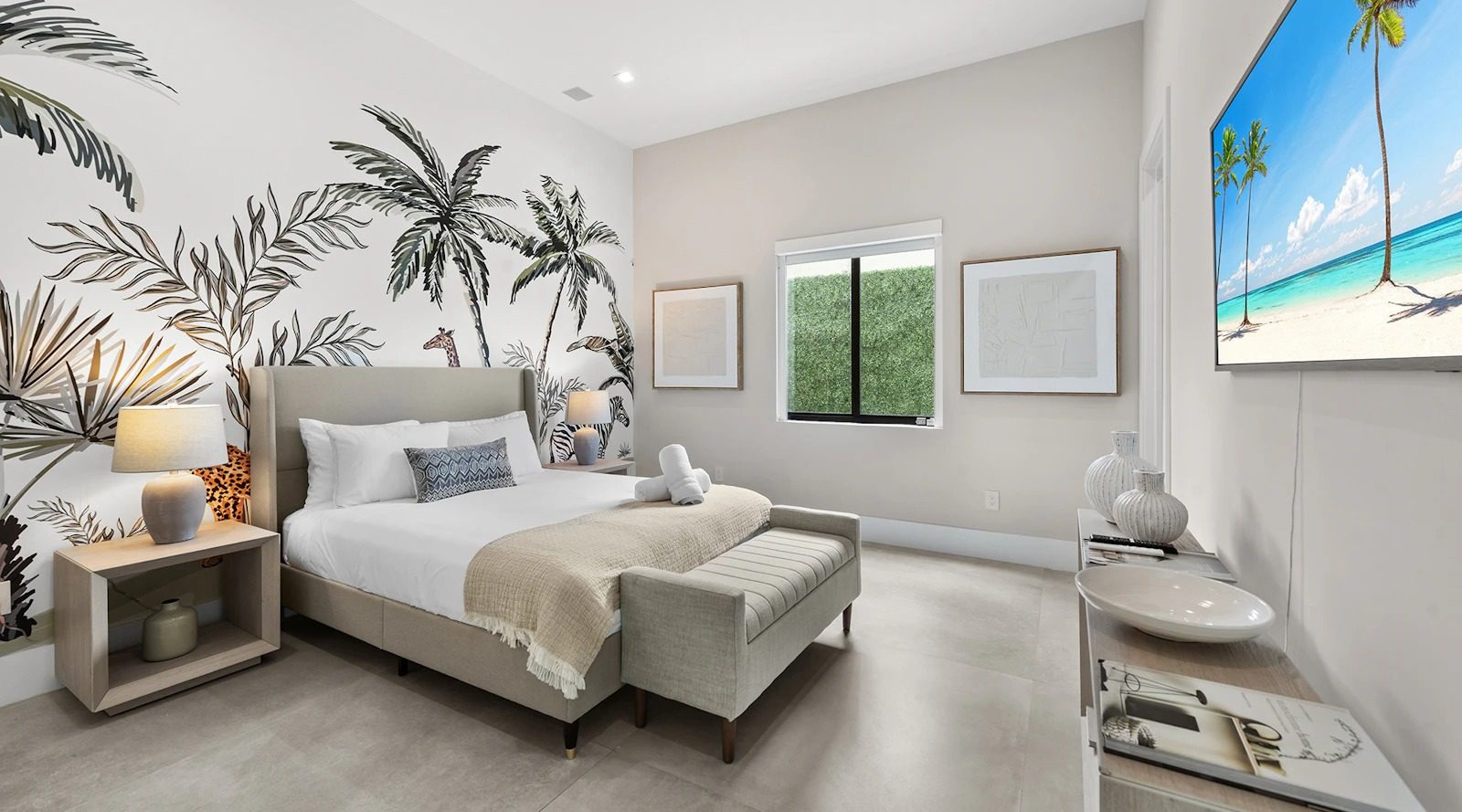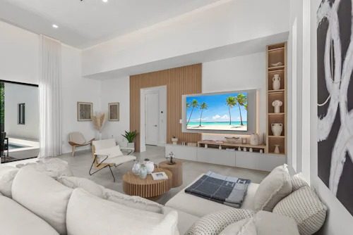 Inside, bright and airy living spaces seamlessly connect with the outdoors, creating the perfect flow for group getaways. With 5 spacious bedrooms and 5 bathrooms, including two king suites, Villa Coral Wave comfortably accommodates up to 14 guests across 3,600 sqft of living space. Plush furnishings, modern finishes, and thoughtful design touches make every stay both stylish and relaxing.