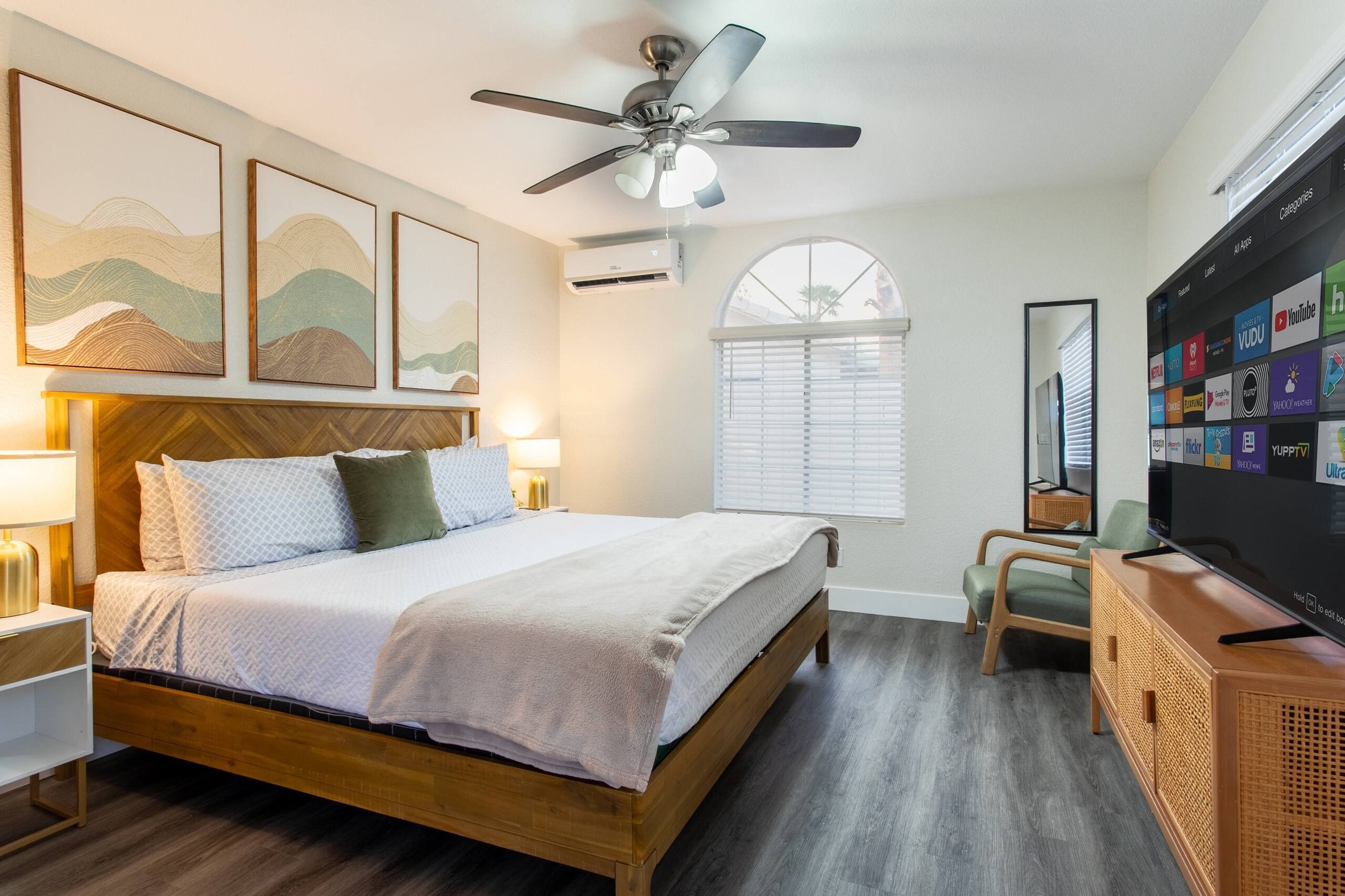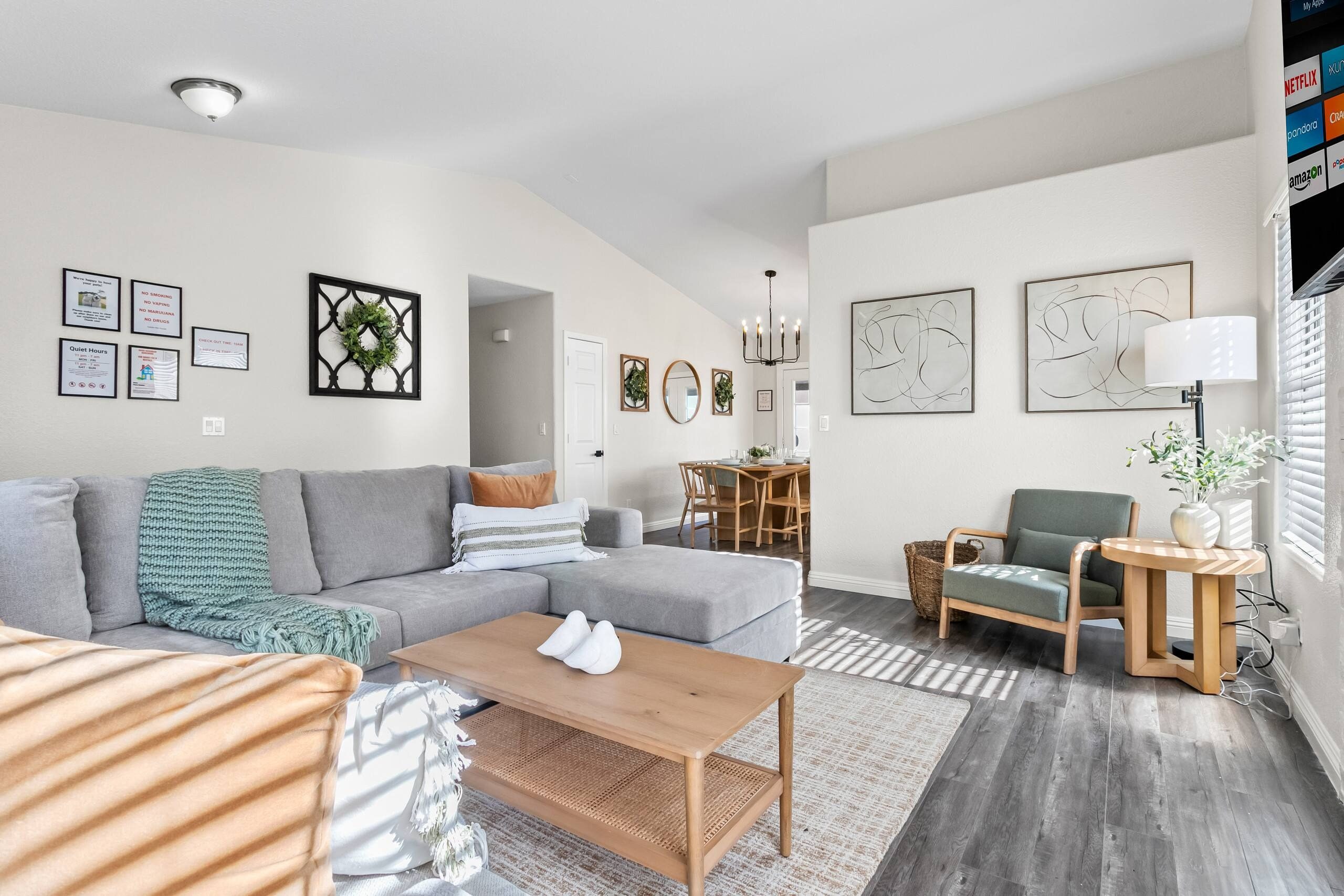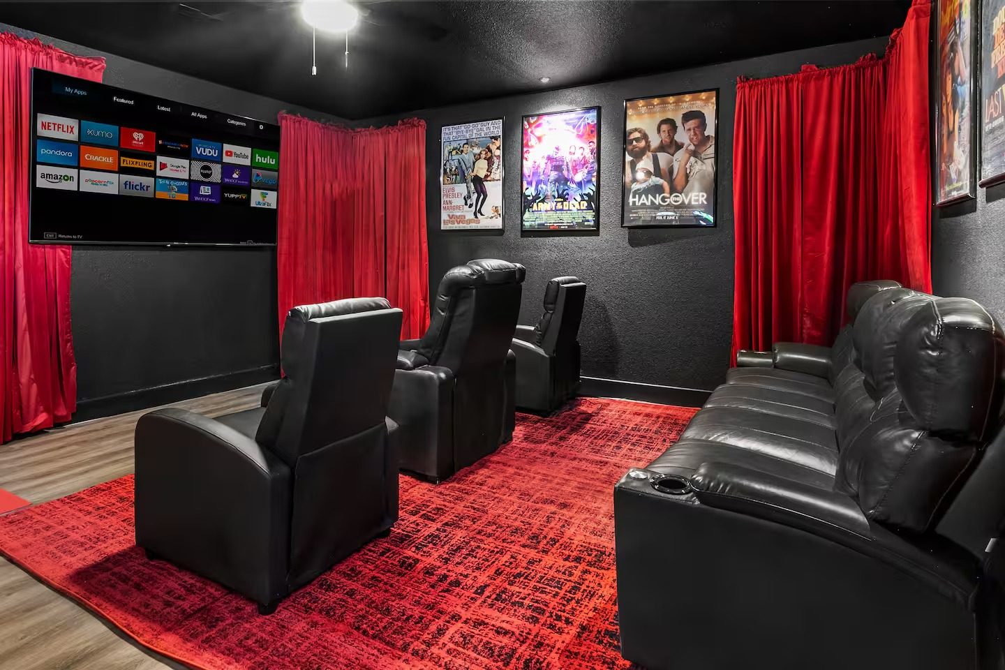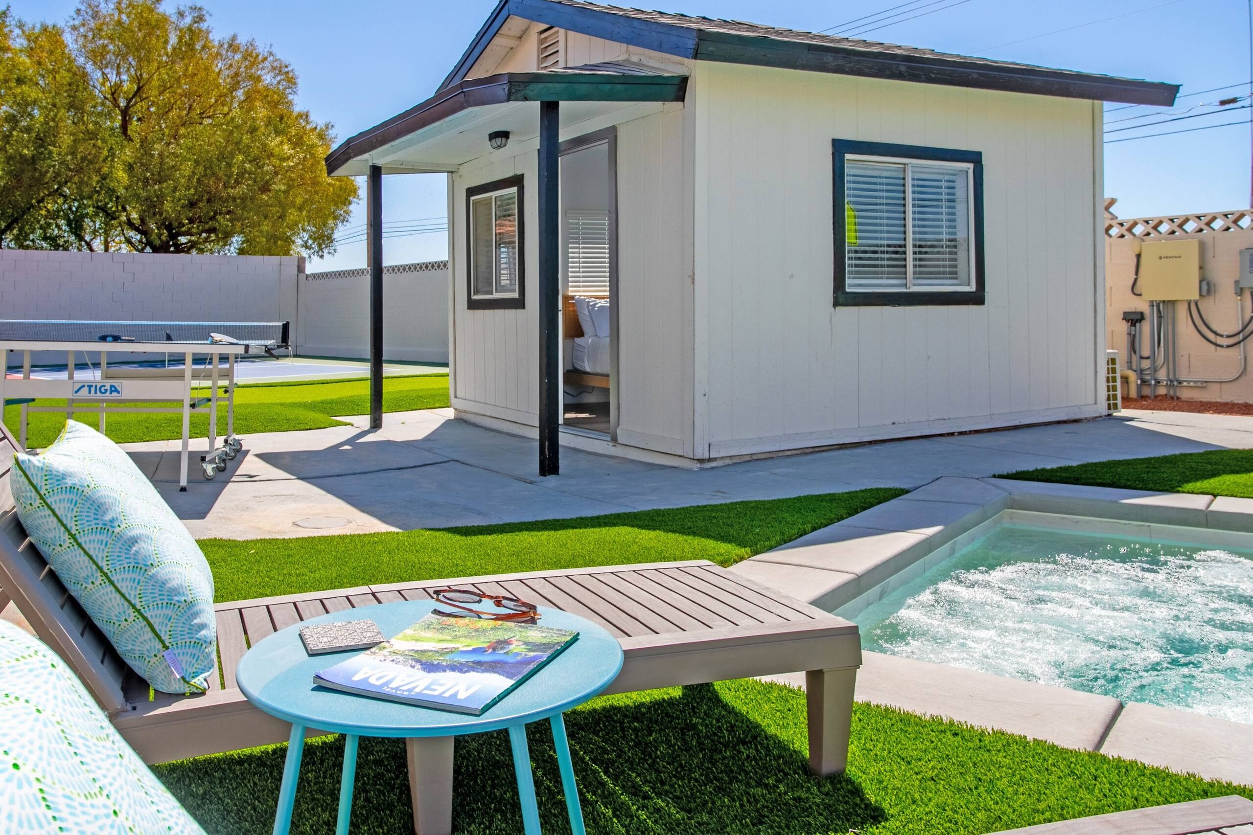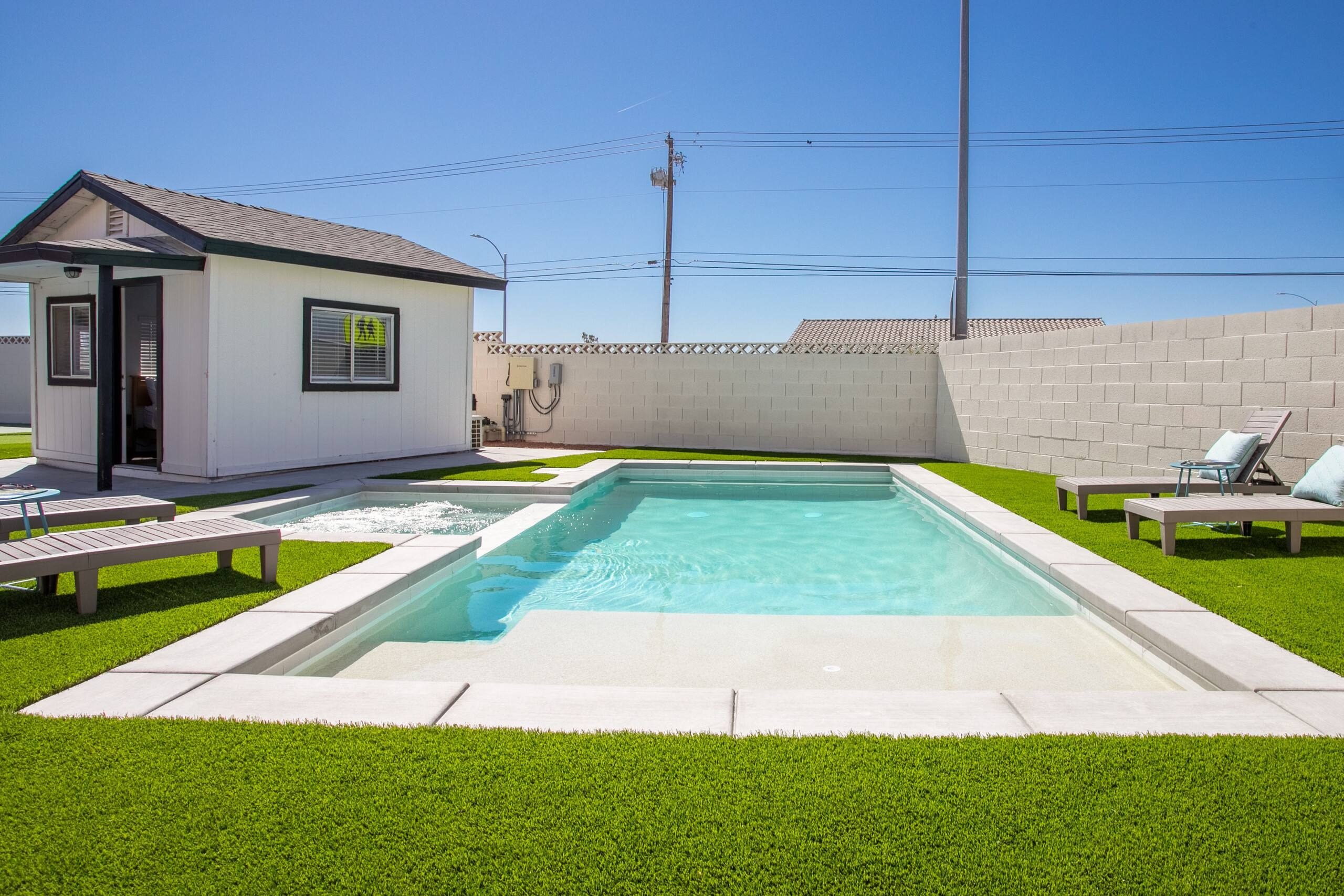 Villa Palmora House is an expansive and fun-filled vacation retreat designed to deliver both relaxation and entertainment for families or groups of up to 14 guests. This beautifully appointed six-bedroom villa blends generous indoor living spaces with exciting recreational features that make it much more than just a place to sleep. Inside, you’ll find a fully equipped kitchen, comfortable communal areas, and thoughtful amenities that cater to large groups, including a dedicated movie room for cozy nights in and game-friendly spaces like a pickleball court, arcade machines, pool table, ping pong and other backyard games that keep everyone entertained. Step outside to your private outdoor oasis — where a sparkling pool and spa offer the perfect setting for soaking up the Nevada sun by day or unwinding under the stars at night. Each bedroom provides a comfortable resting spot after a day of adventure, whether you’re exploring the Las Vegas Strip’s world-class dining and entertainment or enjoying local attractions closer to home. Located in a quiet North Las Vegas neighborhood just a short drive from the Strip and other major points of interest, Villa Palmora House combines convenience with comfort, making it an ideal choice for celebratory trips, golf vacations, family reunions, or any group getaway where memorable moments and shared experiences matter.