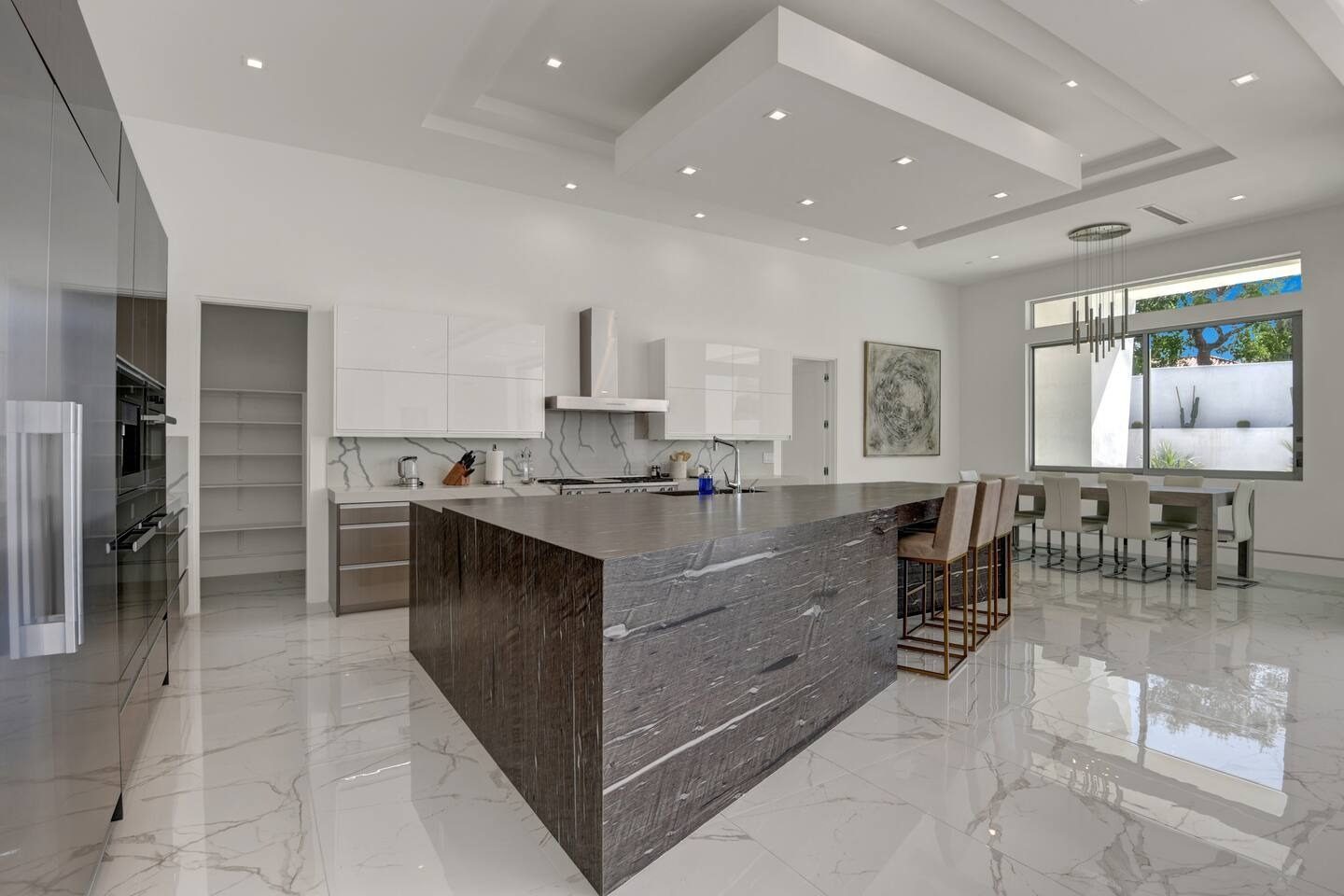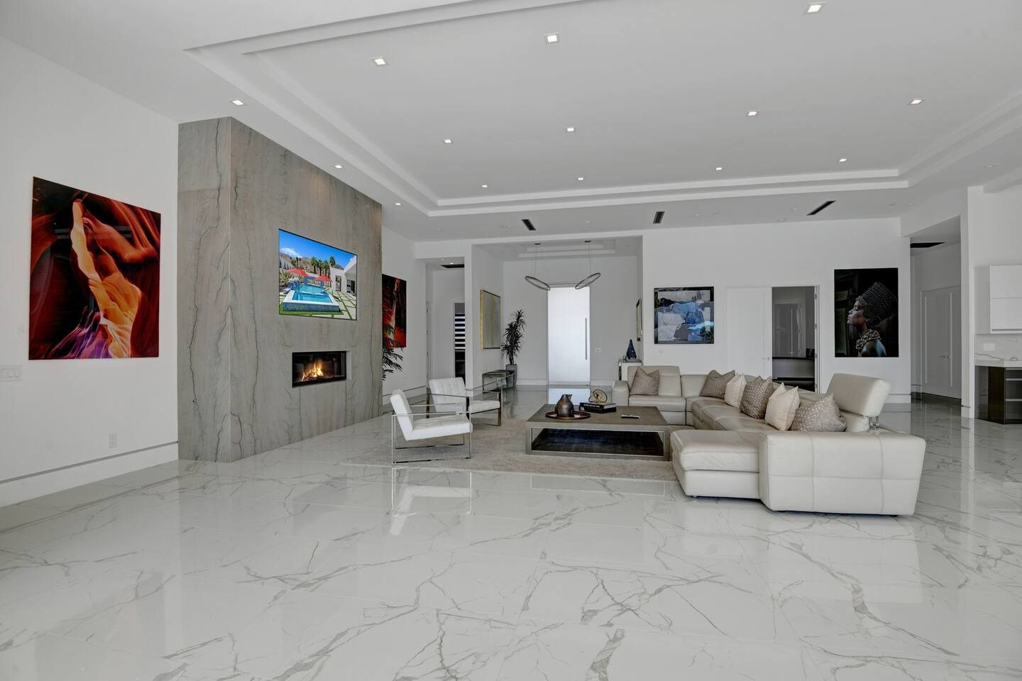 Sophisticated living spaces: Light-filled, open-plan living and dining areas furnished in modern style — ideal for relaxation or hosting a cozy gathering.