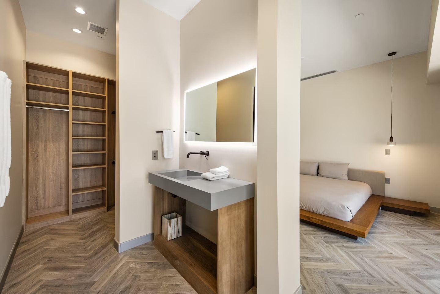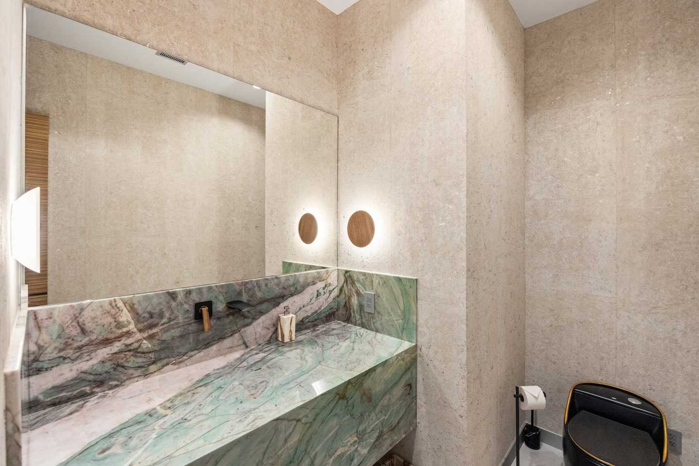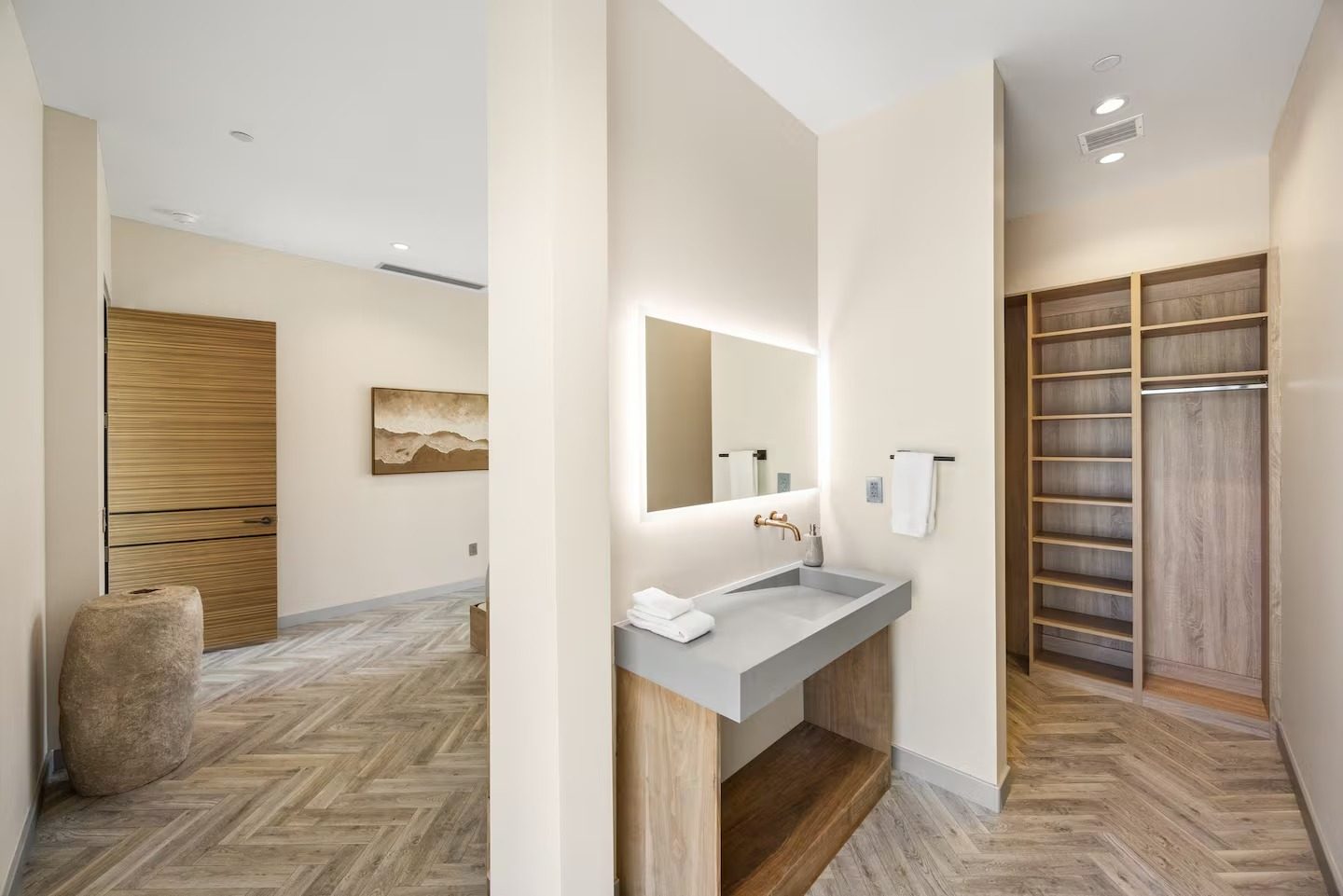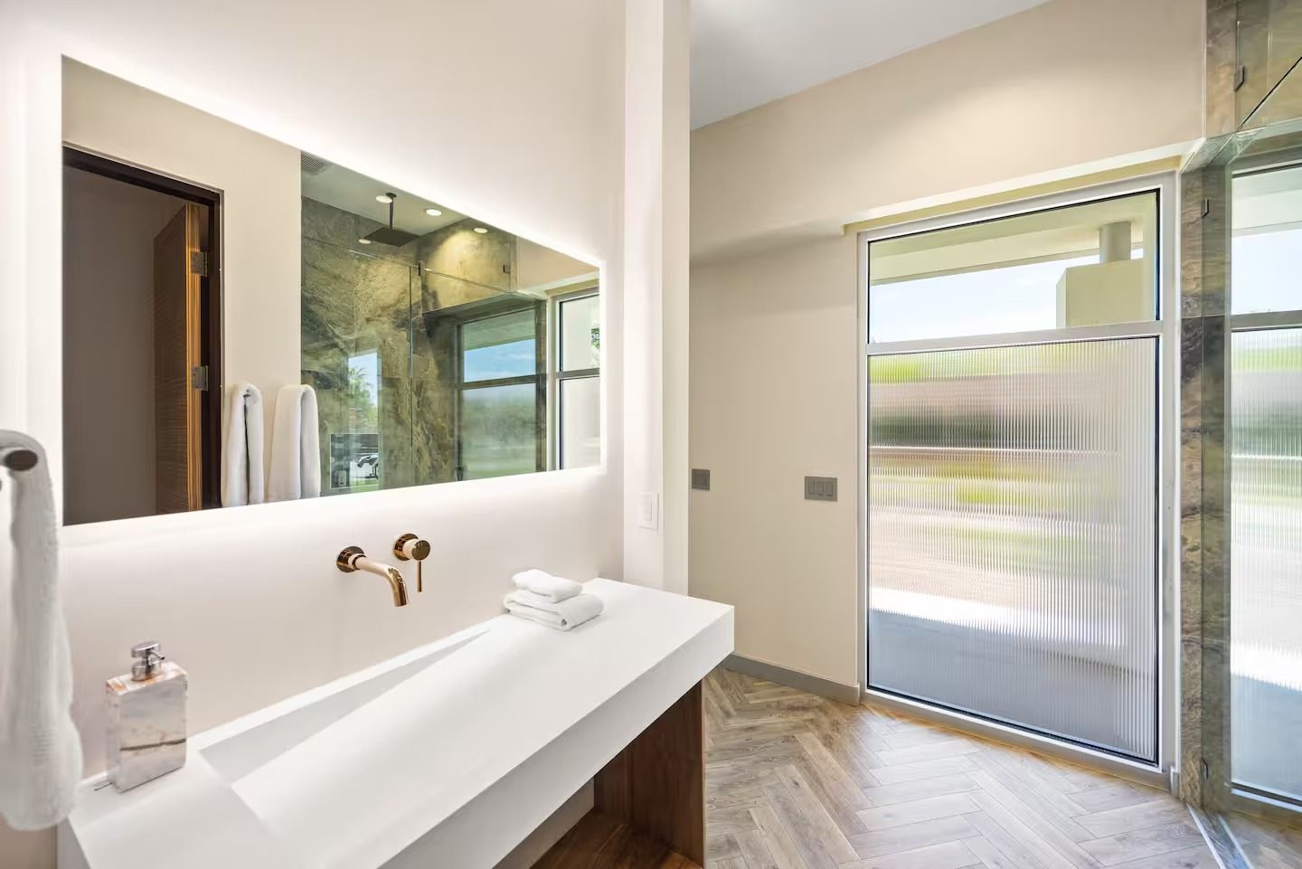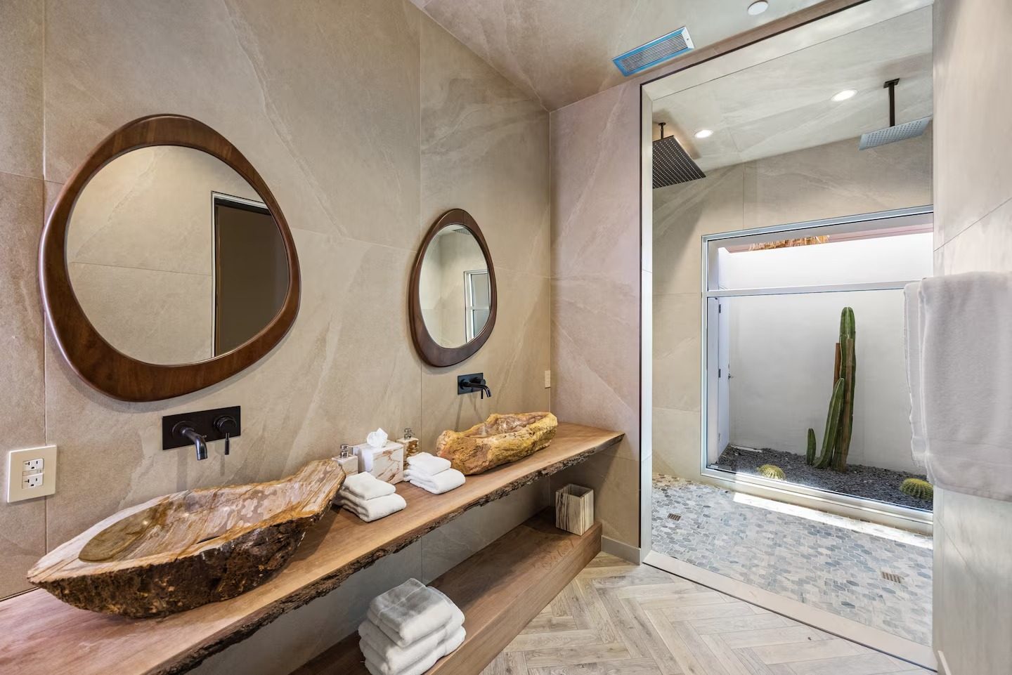Six modern bathrooms featuring updated vanities, walk-in showers, and clean, minimalist finishes.