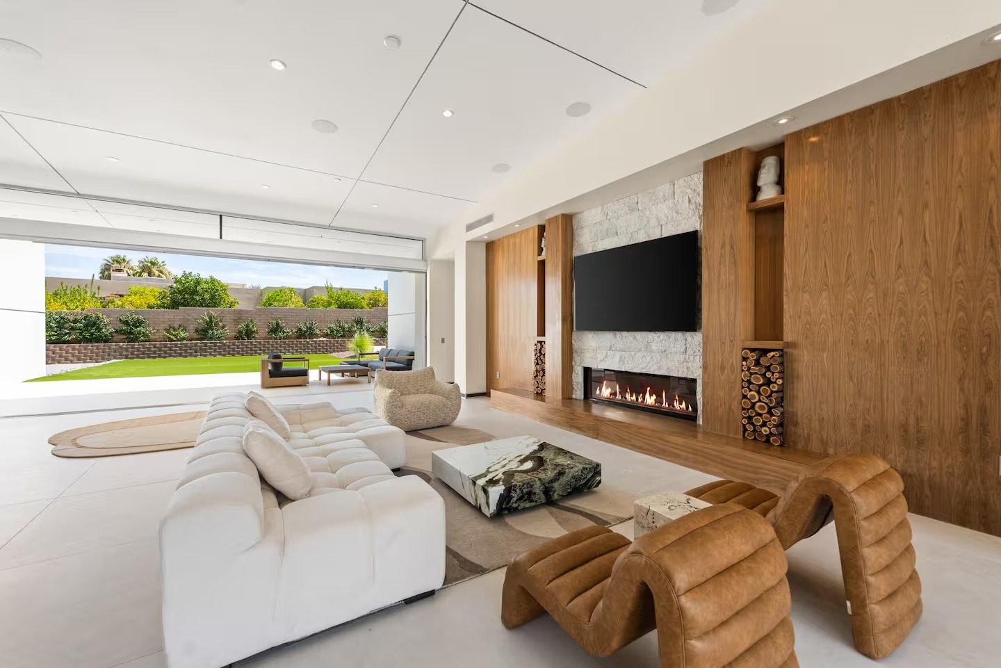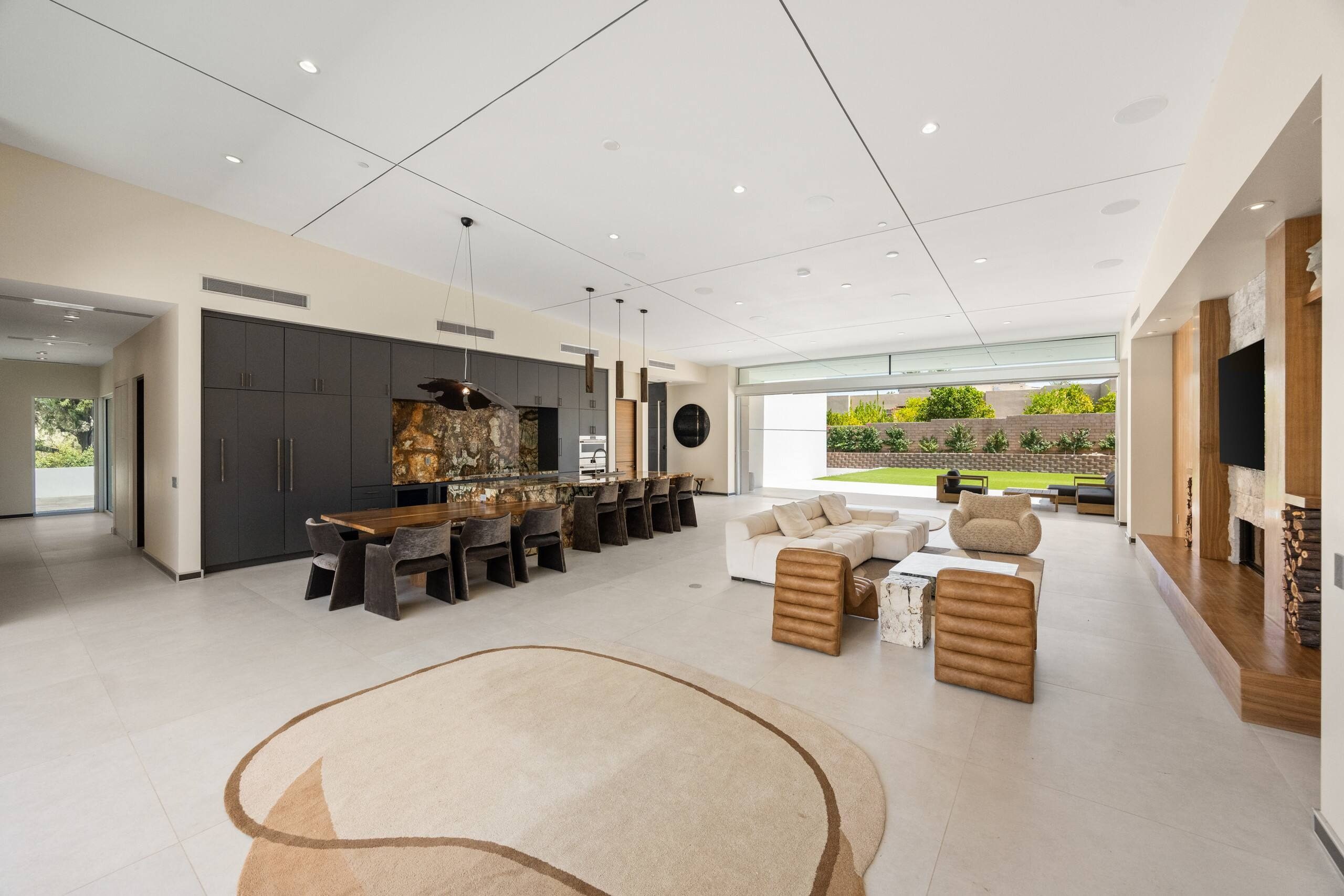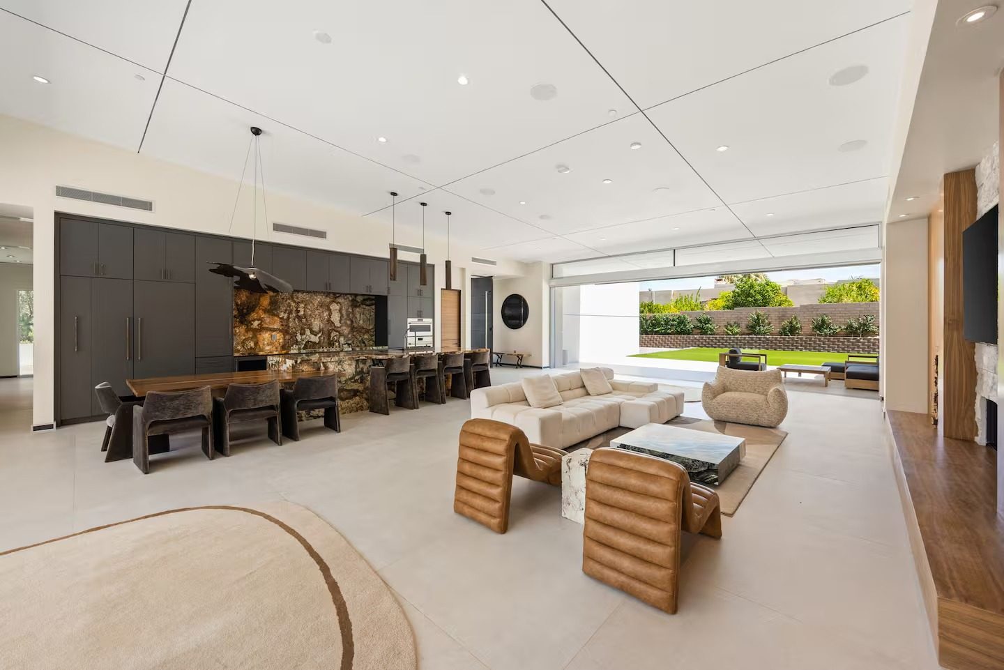 Elegant open-concept living area with stylish furnishings, natural light, and seamless flow into the outdoor space.