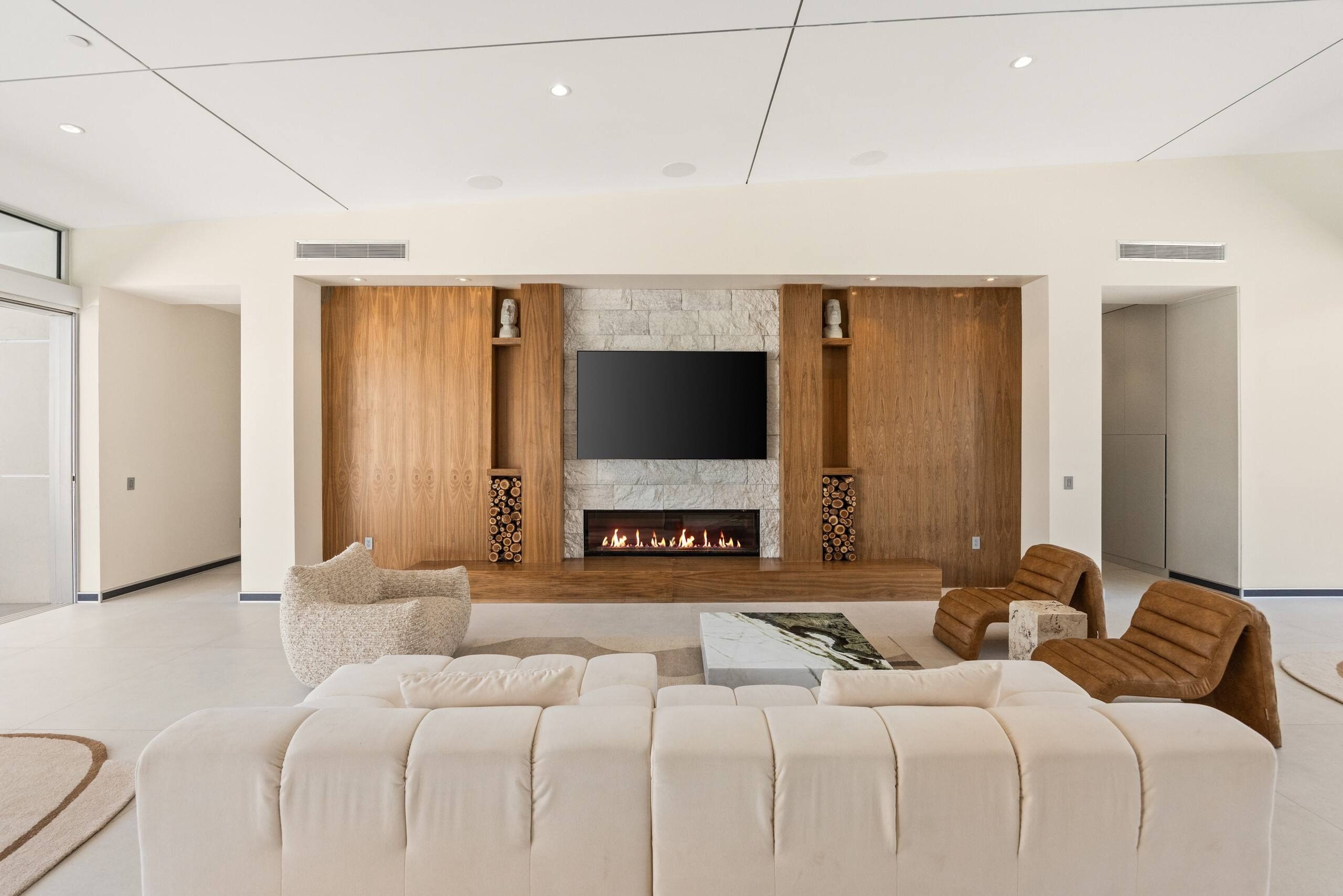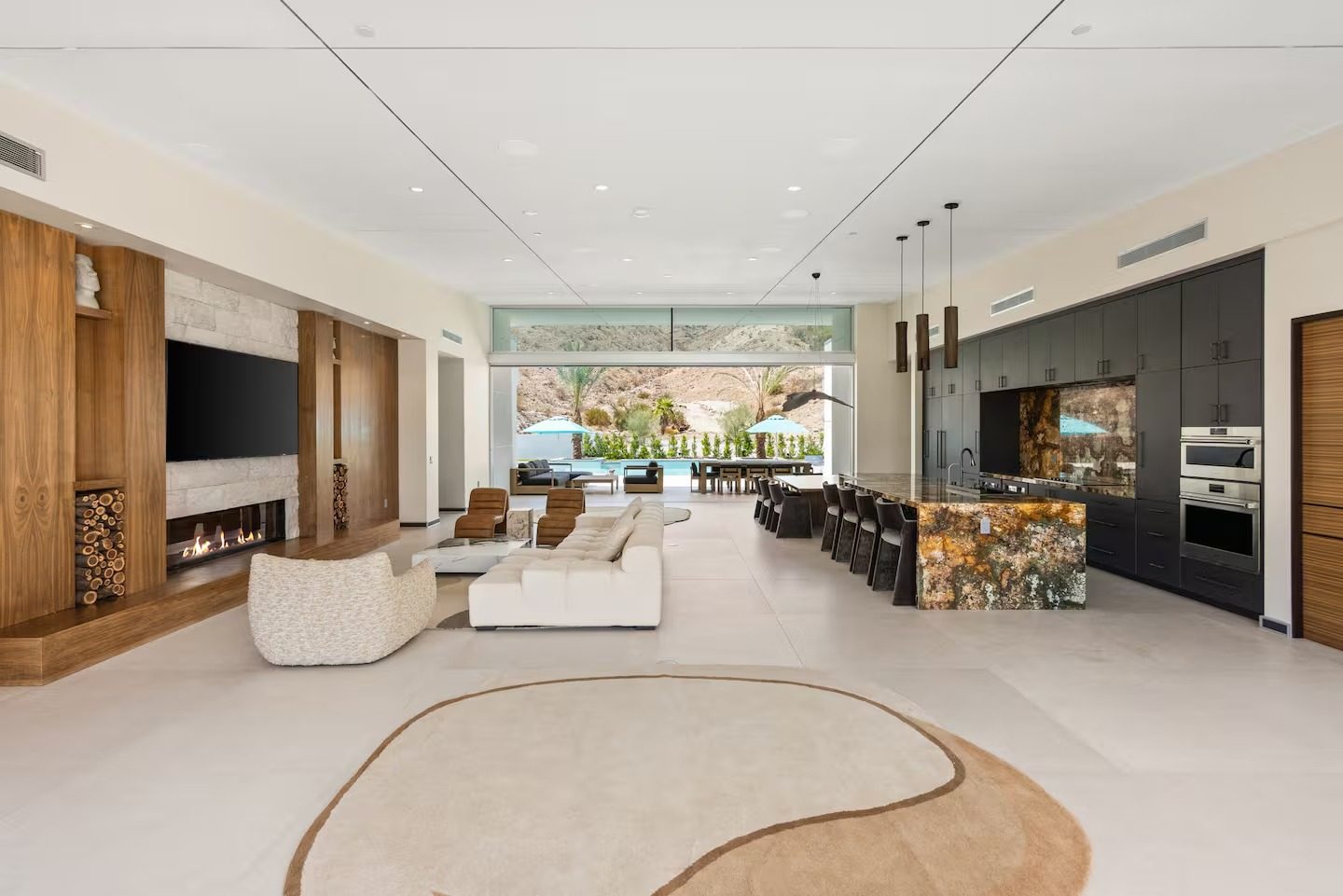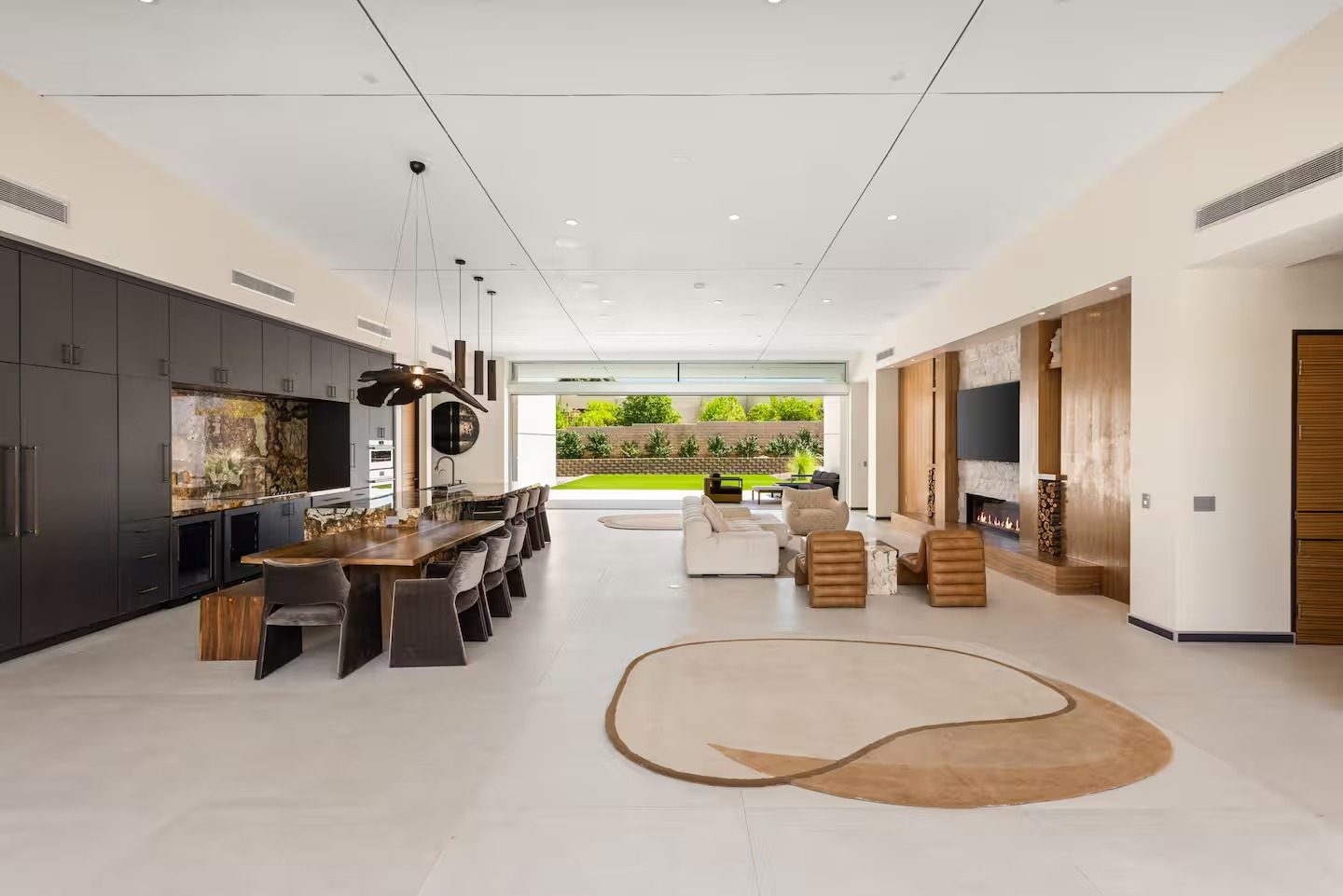 Elegant open-concept living area with stylish furnishings, natural light, and seamless flow into the outdoor space.