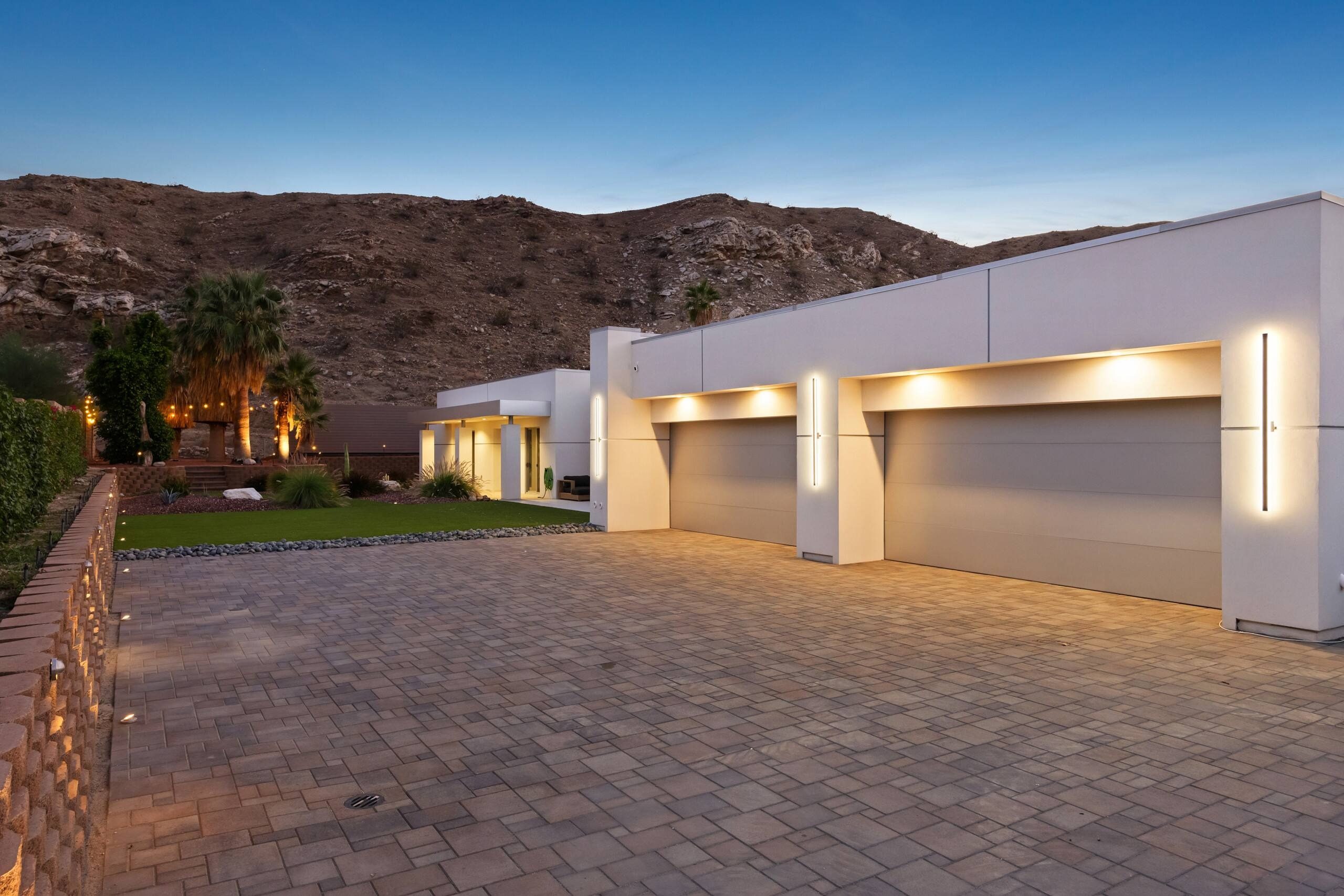 Secure parking with garage access and additional driveway capacity for multiple vehicles.