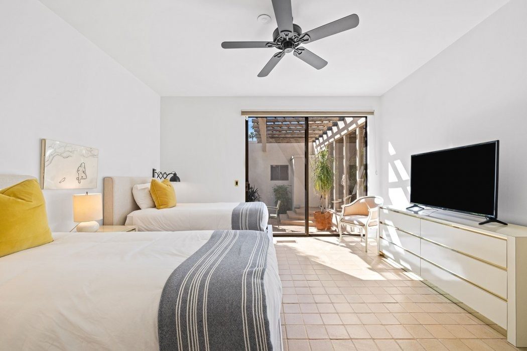 Bedroom 3: Two Twin beds, en suite bath with shower, views of courtyard with dining nook.
