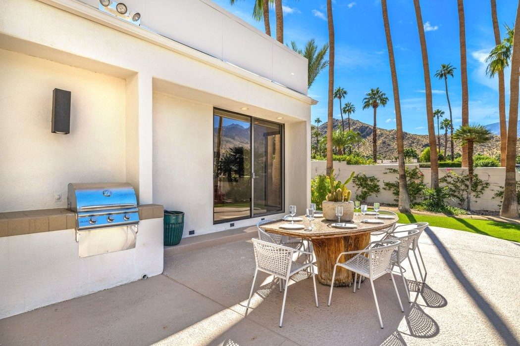 The resort-style backyard is designed for relaxation and entertainment. Enjoy a custom pool, spa, and beautifully landscaped grounds framed by swaying palms. Dine alfresco at a table for 8, host gatherings around the built-in BBQ, or sip cocktails at the indoor/outdoor wet bar—all while taking in panoramic mountain views.