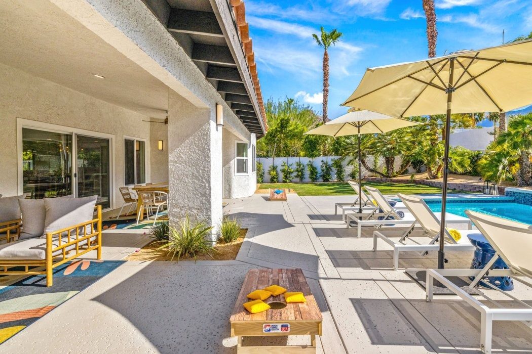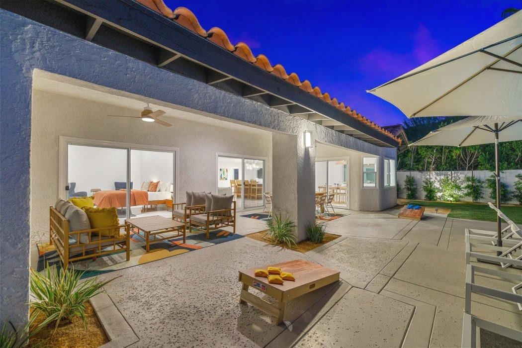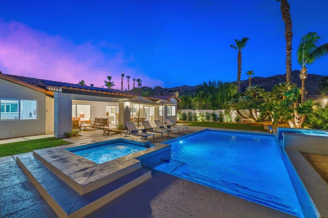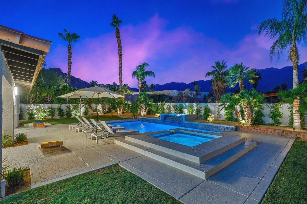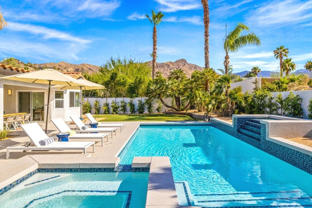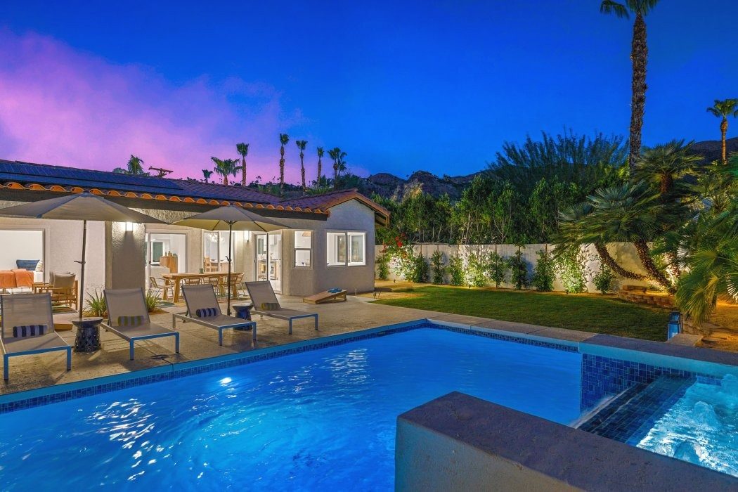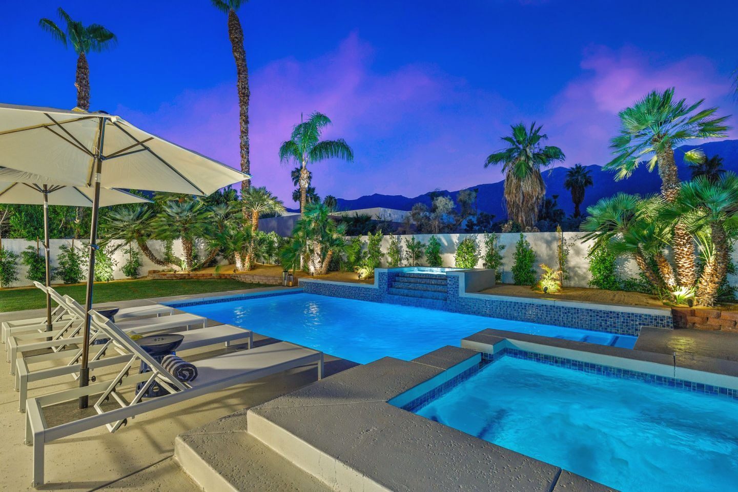 Nestled in the eclectic and bohemian neighborhood of Araby Cove, Villa Elysian Tide blends contemporary style with resort-style amenities for the ultimate Palm Springs escape. Privately gated and recently remodeled, this 5-bedroom, 4-bath retreat was designed with both relaxation and entertainment in mind.