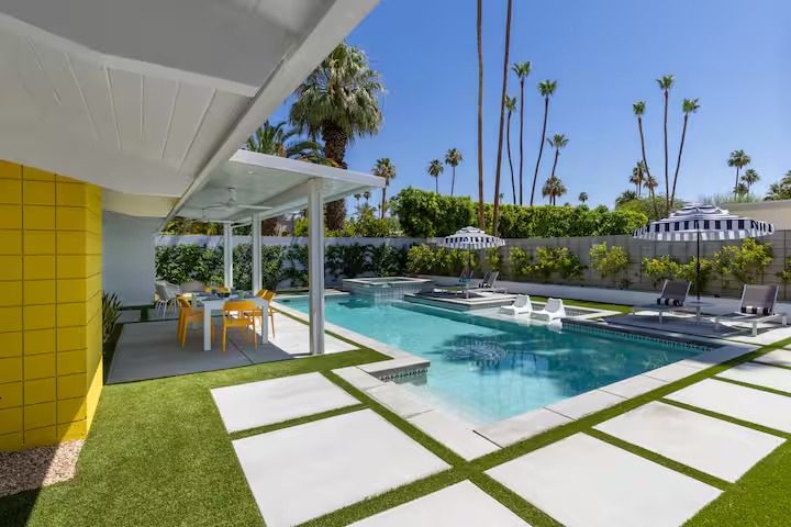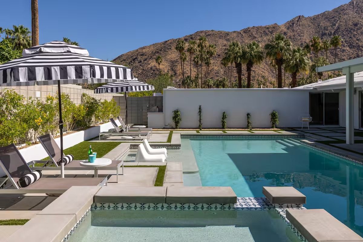 P.S. City ID #3679**MINIMUM AGE TO RENT IS 25** No Pets Allowed Located on Millionaire’s Row in Vista Las Palmas and a short distance to Palm Canyon Dr. Total luxury mid-mod looks right out of Architectural Digest. Large open concept floor plan with w/luxury art and furnishings. The bright interior boasts a sophisticated, yet welcoming vibe, Gourmet kitchen, MBR w/king, and ensuite bath. Resort-style private pool yard w/grand mountain vistas. Additional outdoor amenities include a spa, sun loungers, plumbed gas barbecue, fire feature. Two complete outdoor living areas both offer alfresco seating/dining.