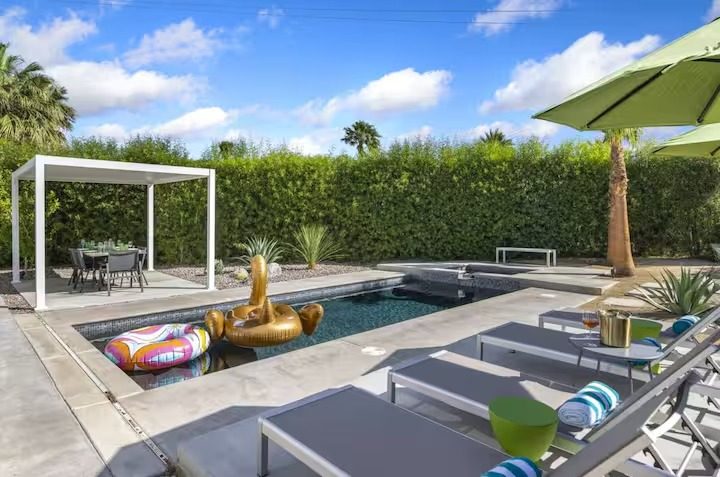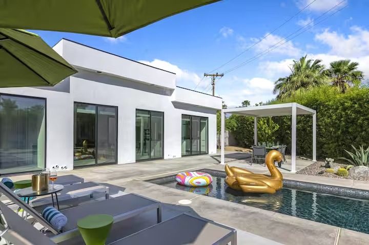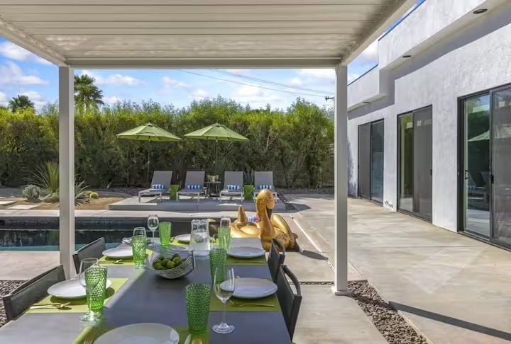 Centrally located in a quiet, well-kept neighborhood just two blocks from Victoria Park, the home is only 5 minutes from downtown Palm Springs’ top dining, shopping, and nightlife. Perfect for couples, friends, or families, with premium amenities and thoughtful touches throughout.